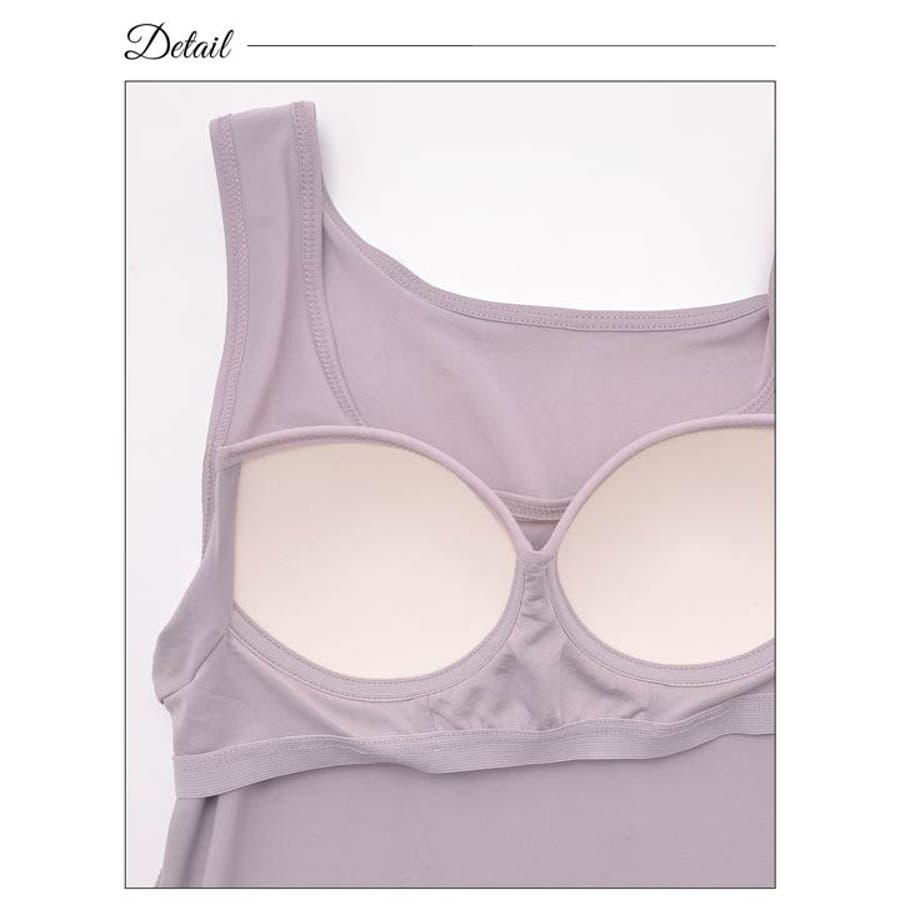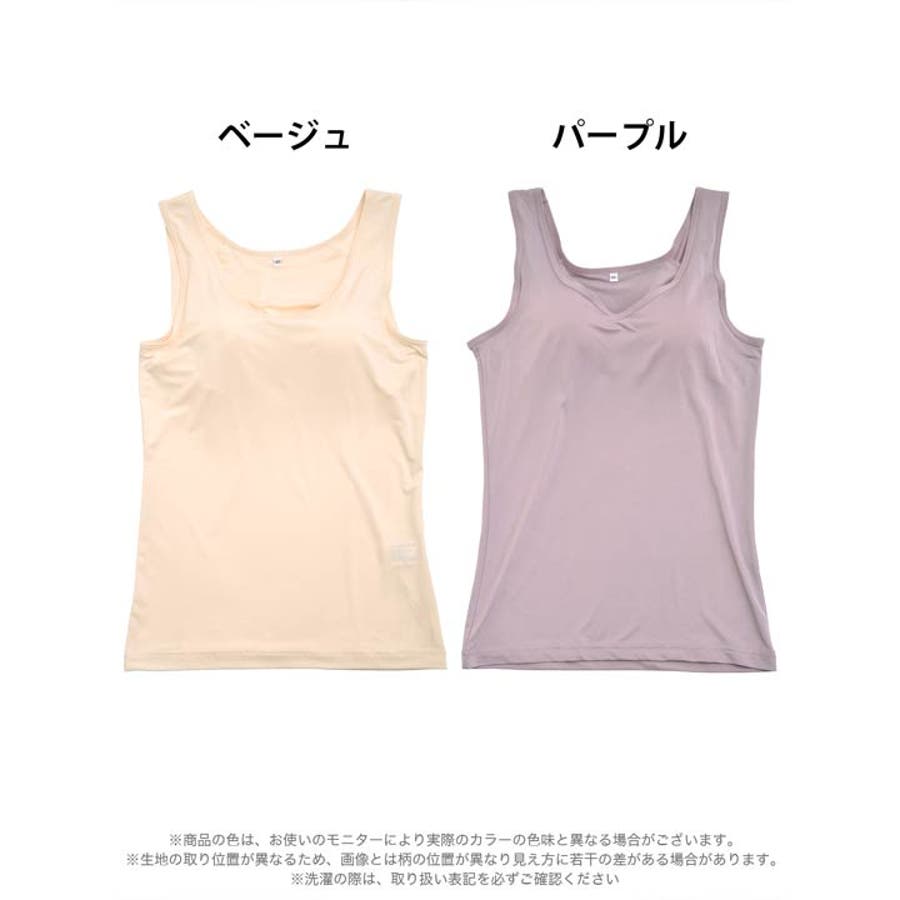 シカ成分の加工が施された、素肌に優しいなめらかなタンクトップ。肌馴染みの良い「ベージュ」と「パープル」の2色展開でインナーに最適◎一体型のカップ付きなのでずれにくい&1枚で着用していただけます♪