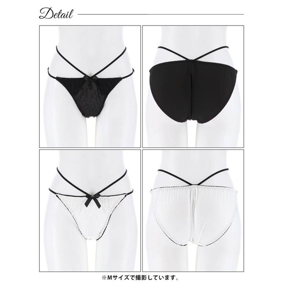 光沢感のあるサテンに、さりげなくレオパード柄を描いた刺激的な単品ショーツ♪ 中央のリボン装飾とショーツサイドにマカロニコードをつかい、腰周りもセクシーな1着です。