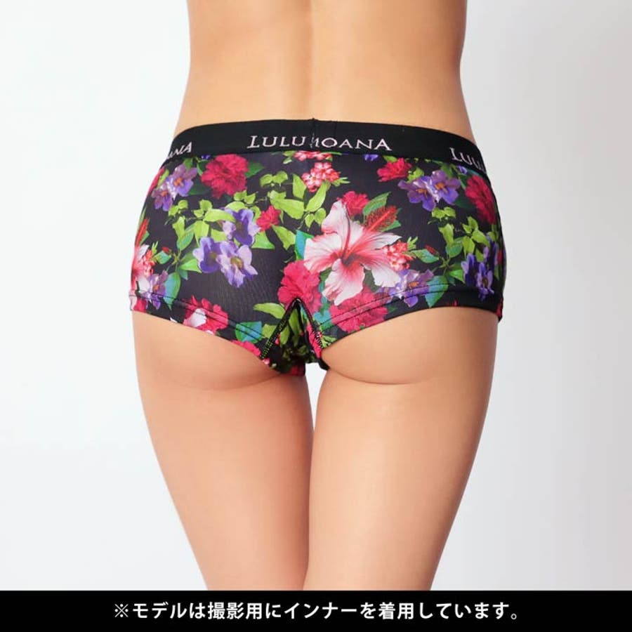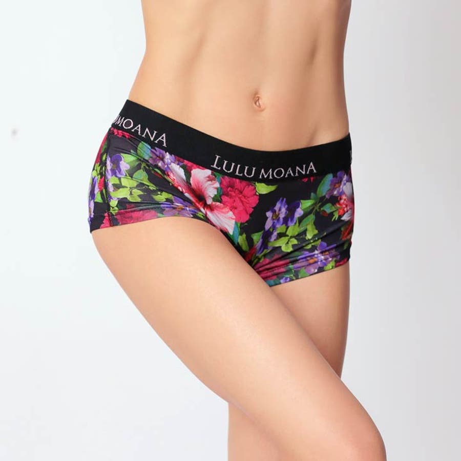 ビビッドカラーの花々が前面にプリントされた華やかなデザインのボーイレッグショーツ。ウエストゴムの白いロゴがアクセント!同デザインのメンズタイプもあるのでカップルでおそろいもできちゃいます♪