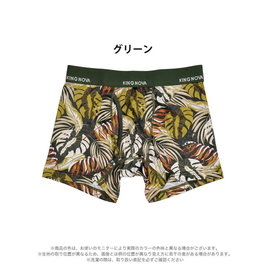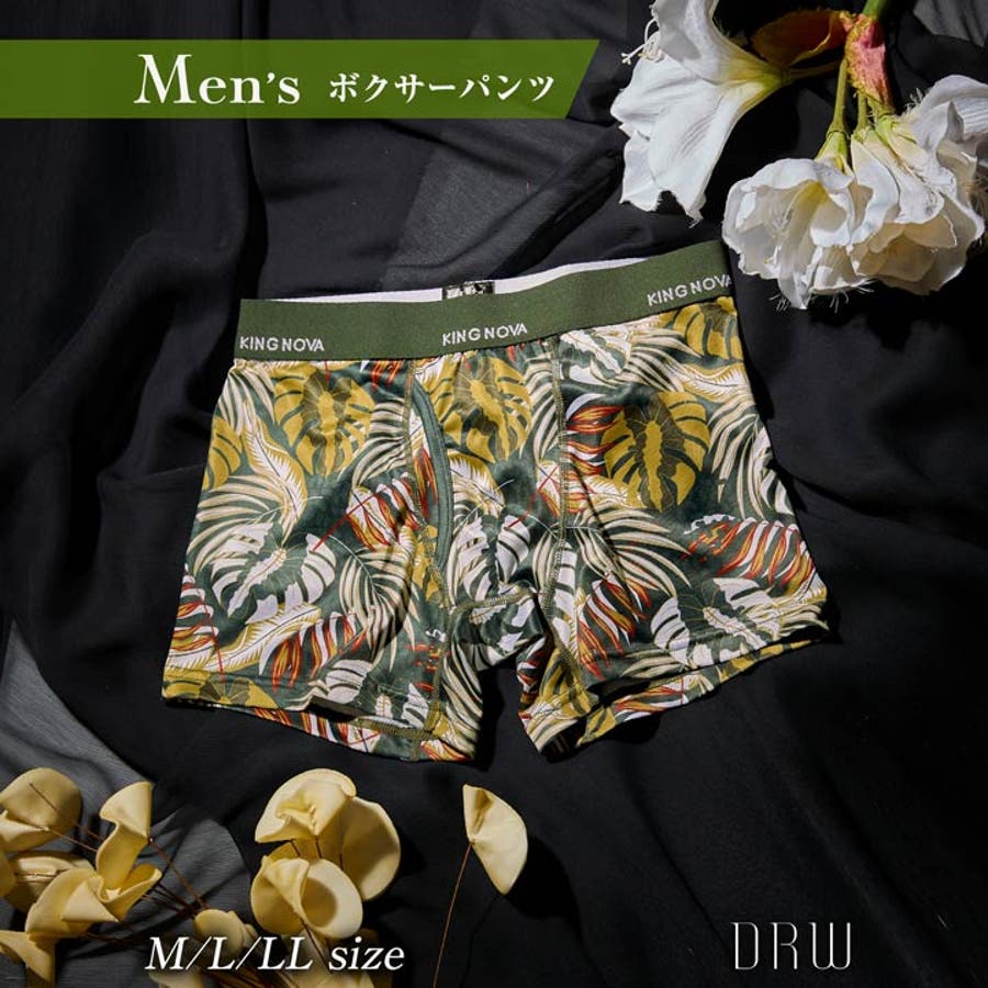 ダイナミックなボタニカル柄プリントが目をひくボクサーパンツ。ウエストゴムは幅広タイプでお腹に食い込みにくい仕様に◎伸びが良くさらりとした肌触りでストレスフリーなはき心地です♪