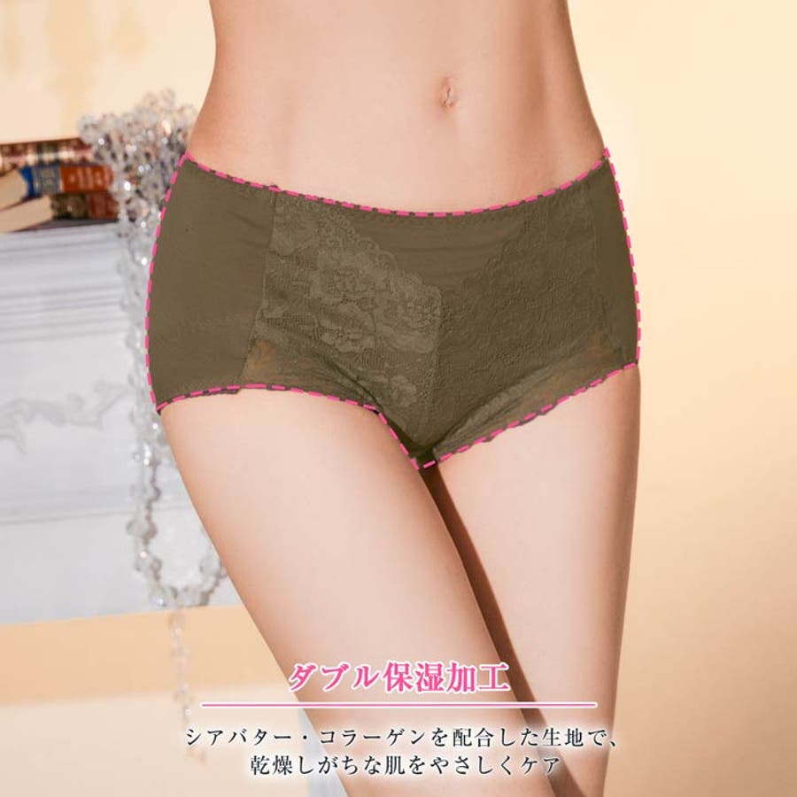 保湿加工が施されたやさしい肌触りのショーツガードル。フロントにはフラワーレースをあしらい上品で女性らしいデザインに♪パワーネットでお尻をキュッと持ち上げ綺麗なヒップラインをメイクしてくれます◎