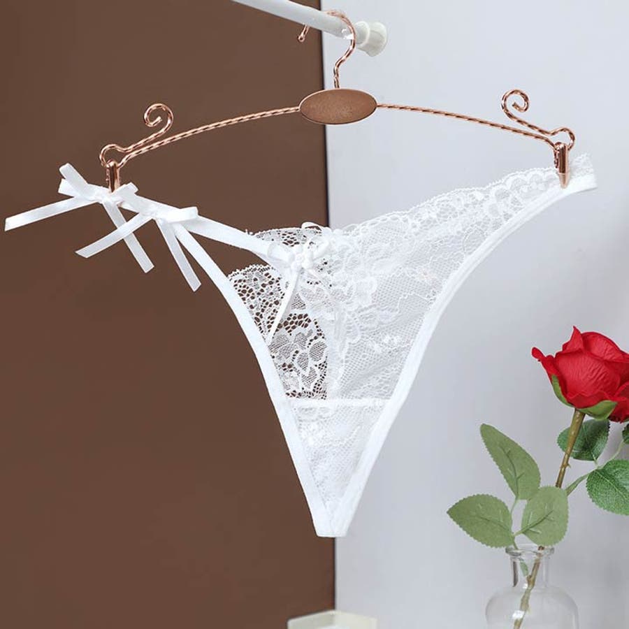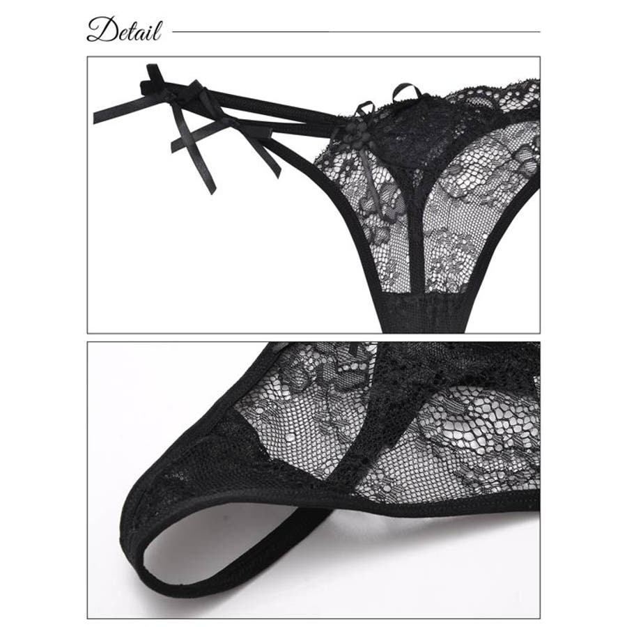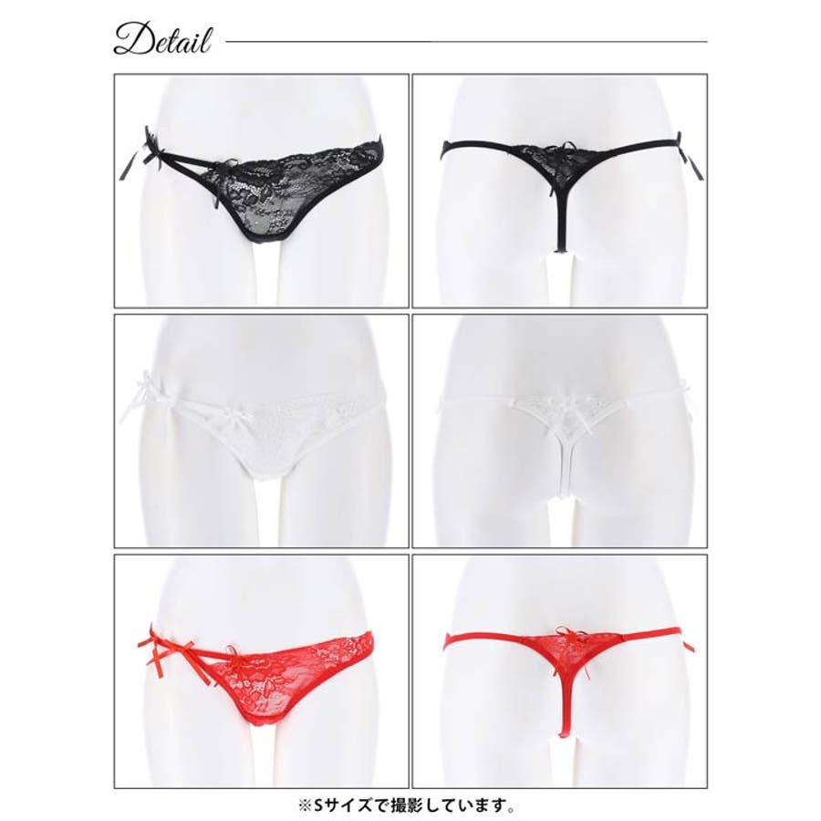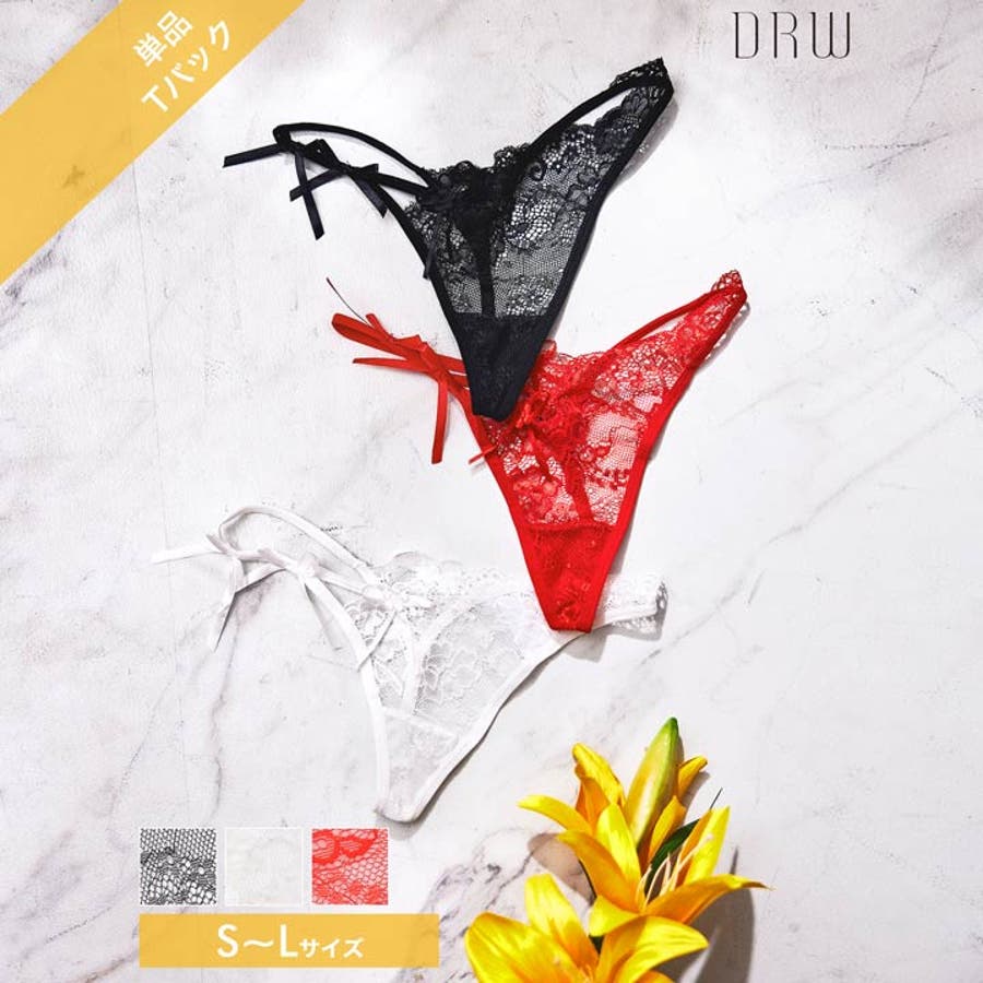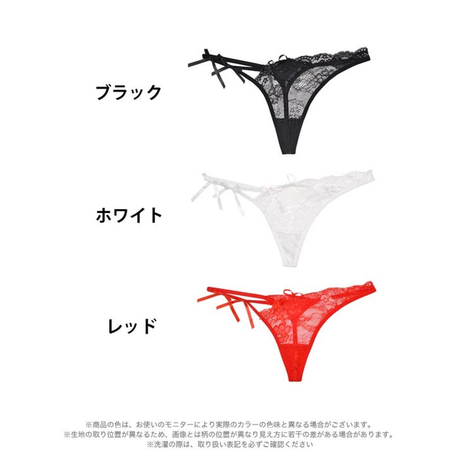アシンメトリーなコードデザインがおしゃれなTバックショーツ。リボンや小花のモチーフをあしらいほどよく甘さをプラス。フロント&バックは素肌が透けるシアーレースで大人の色気を演出します♪
