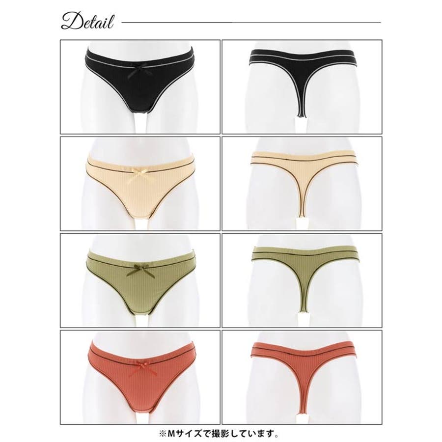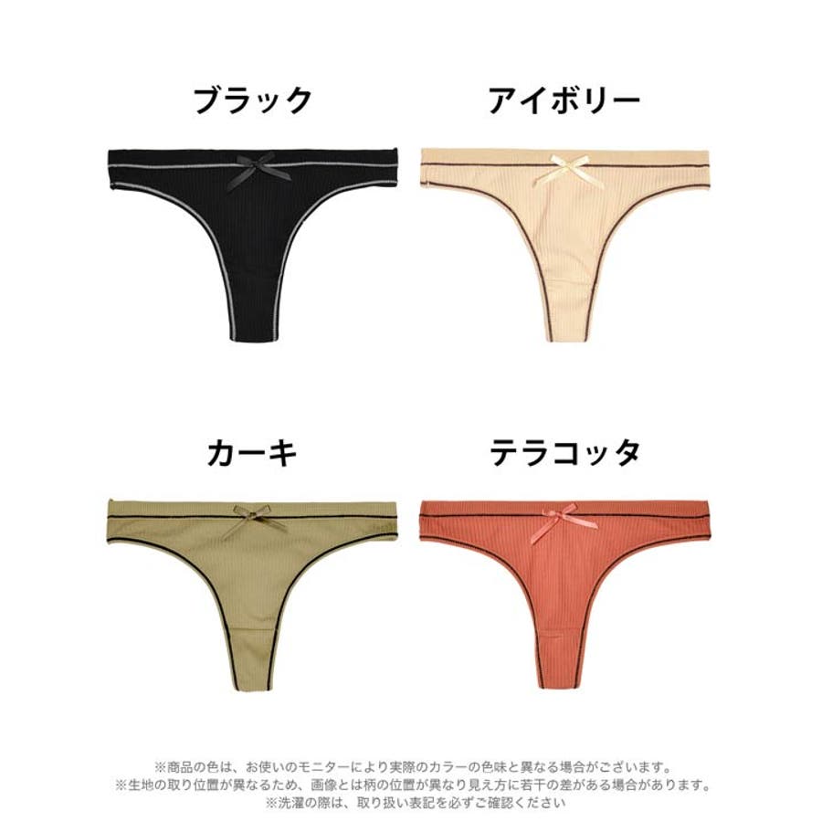 バイカラーの配色ラインがアクセントになったリブ編みのTバックショーツ。フロントのリボンがほどよく可愛らしさをプラス♪シンプルなデザイン&快適な履き心地でデイリー使いにもぴったりです◎