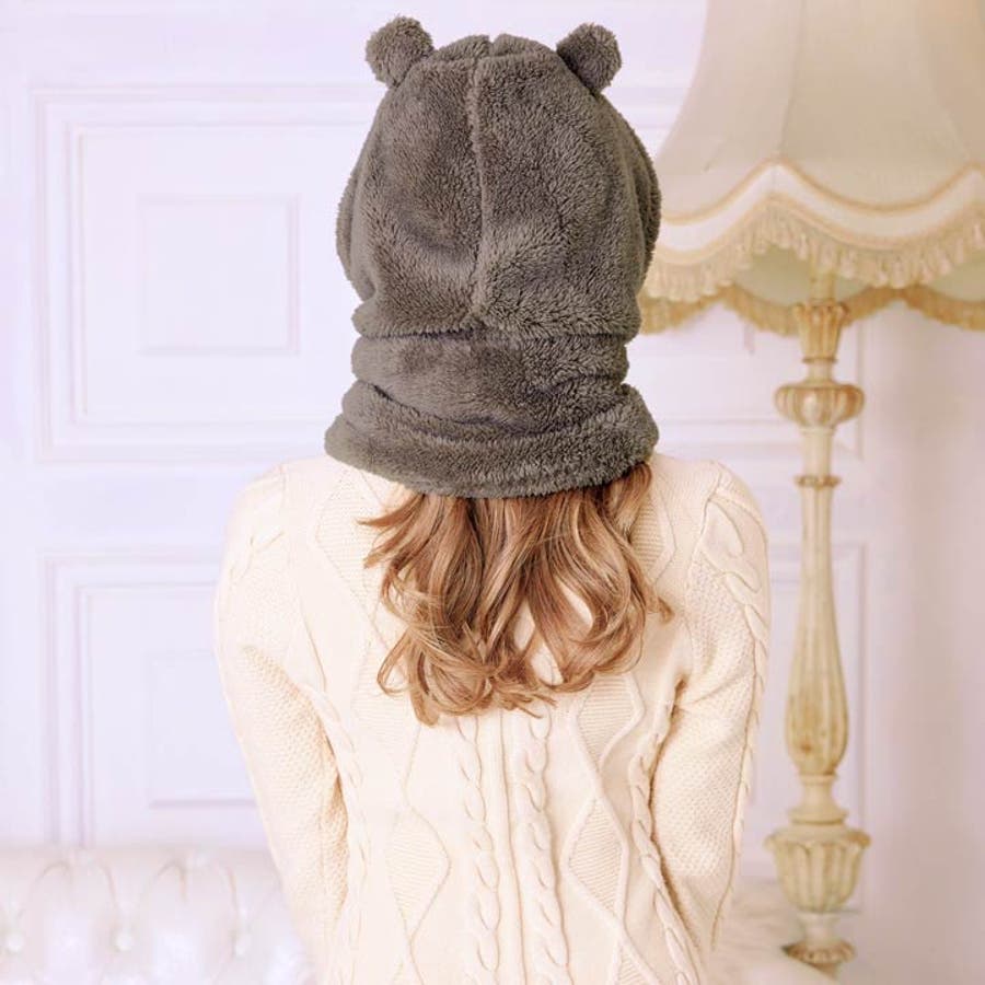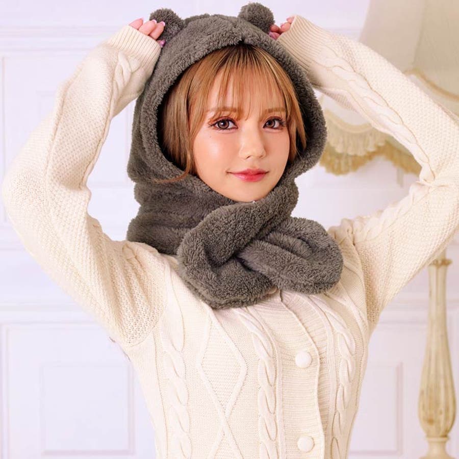 キュートなベア耳が付いたフードマフラー。ふわふわの生地で顔周りから首元まで防寒します◎ 子供から大人まで使える大きさで、普段使いから、イベントなどにも使える冬場マストなアイテムです♪ モデル…yui