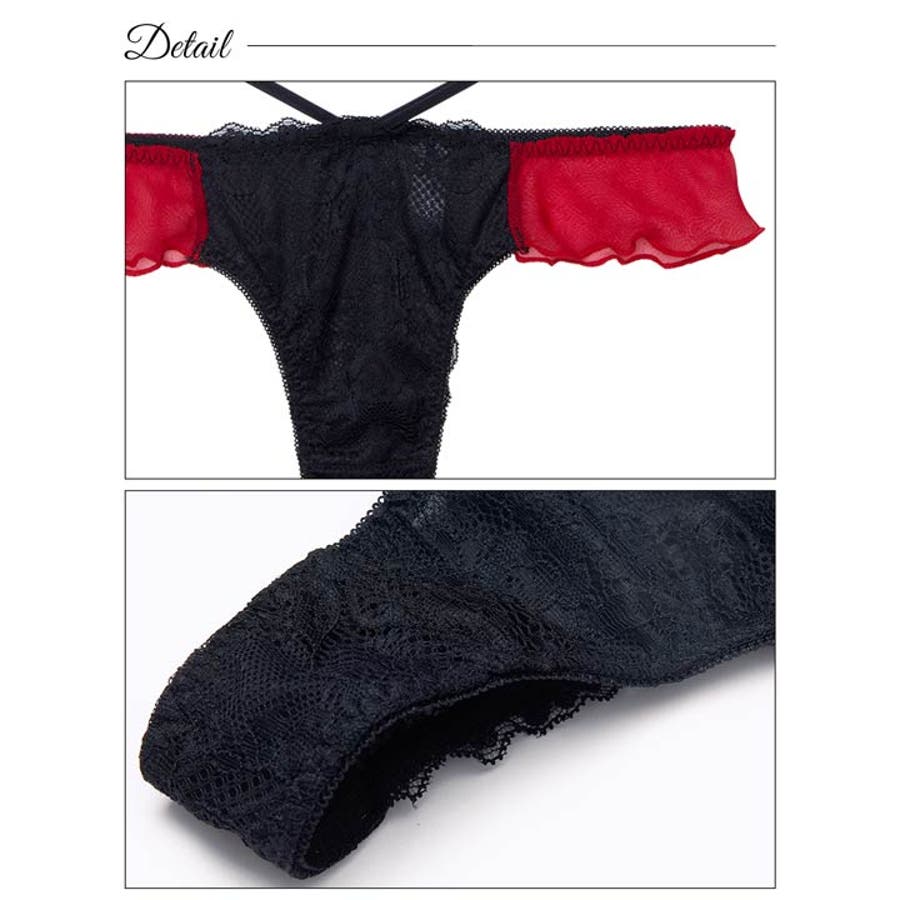 ストリングの色気とフリル感のあるショーツサイドでほんのり甘さも加えた1着。