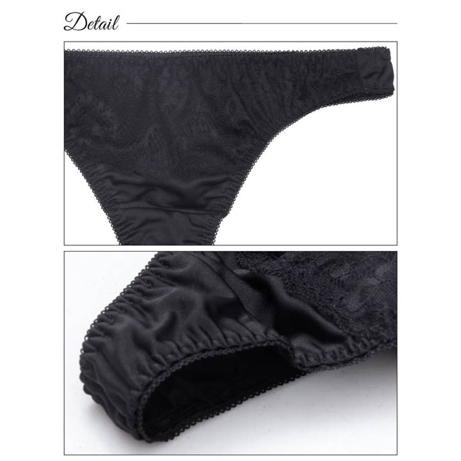 フロントのレースが女性らしさを感じさせるシンプルなデザインのTバックショーツ。