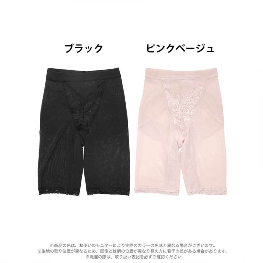 フロントのV字にあしらわれたレース素材が女性らしいスタイルを叶える補正ガードル。