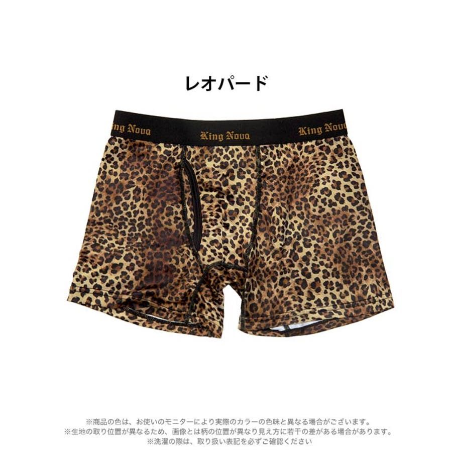 定番人気のレオパードプリントでクールに仕上げた男性用ボクサーパンツ。ウエストのゴールドロゴがアクセントとなり、ワイルドで男らしい印象に♪サラッとしたなめらかな生地でムレにくく、ほどよい伸縮性があるので快適なフィット感です◎