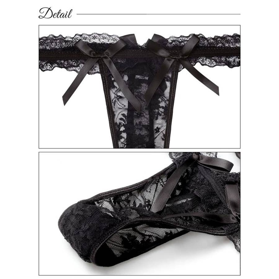 小花柄のレースに大きなリボンがあしらわれたフェミニンなデザインのTバックショーツ。