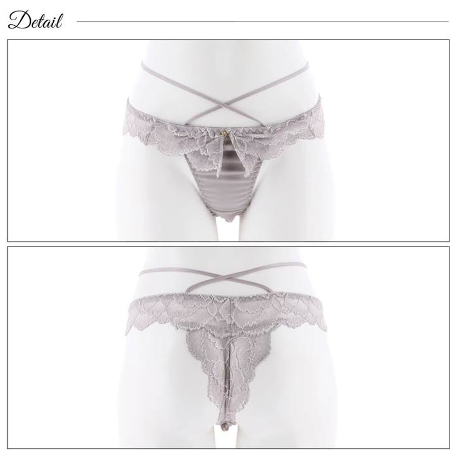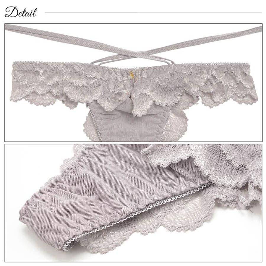 バックレースとクロスコードがセクシーさを演出してくれる単品Tバックショーツです。フェミニンなフリルが可愛らしい印象も与えてくれます♪