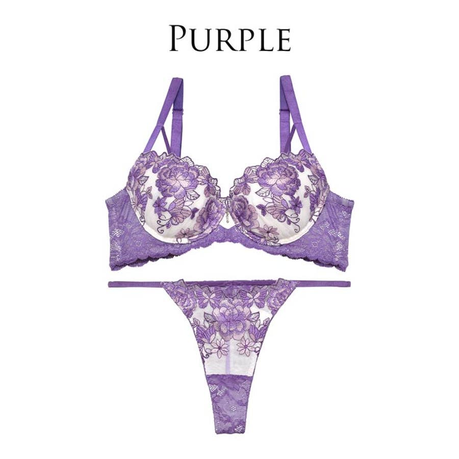 2色使いのピオニーにバタフライが舞う刺繍デザインが上品なランジェリー。中央のカットアウトや繊細なレース透けが妖艶さをプラスします◎ 華奢なストリングは女性らしい曲線美を引き立たせる1着です。