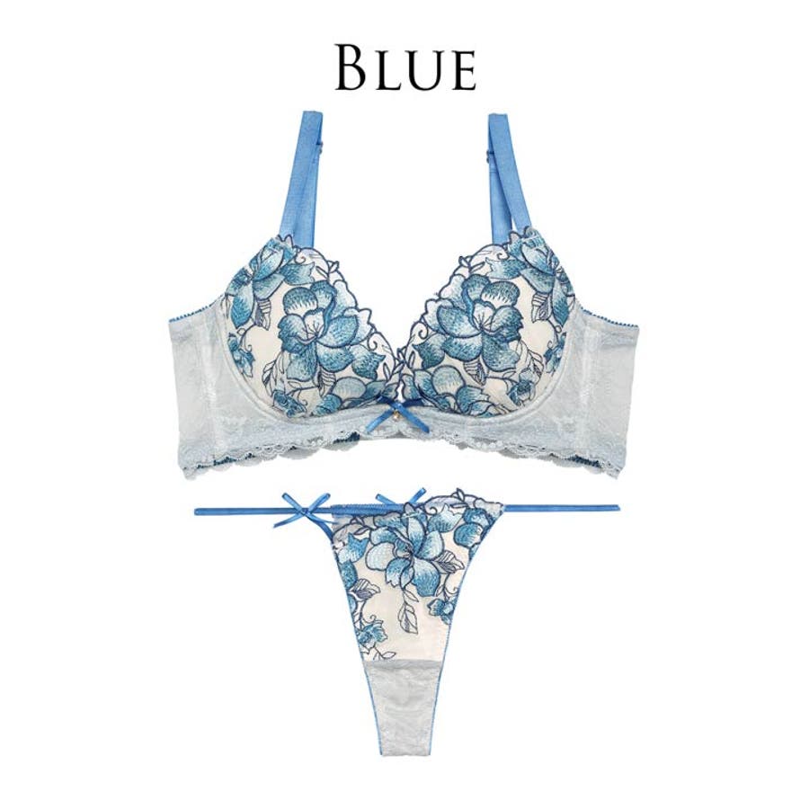 ブルームレーシィマテリアルブラジャー&バック透けTバックショーツ