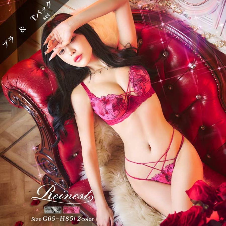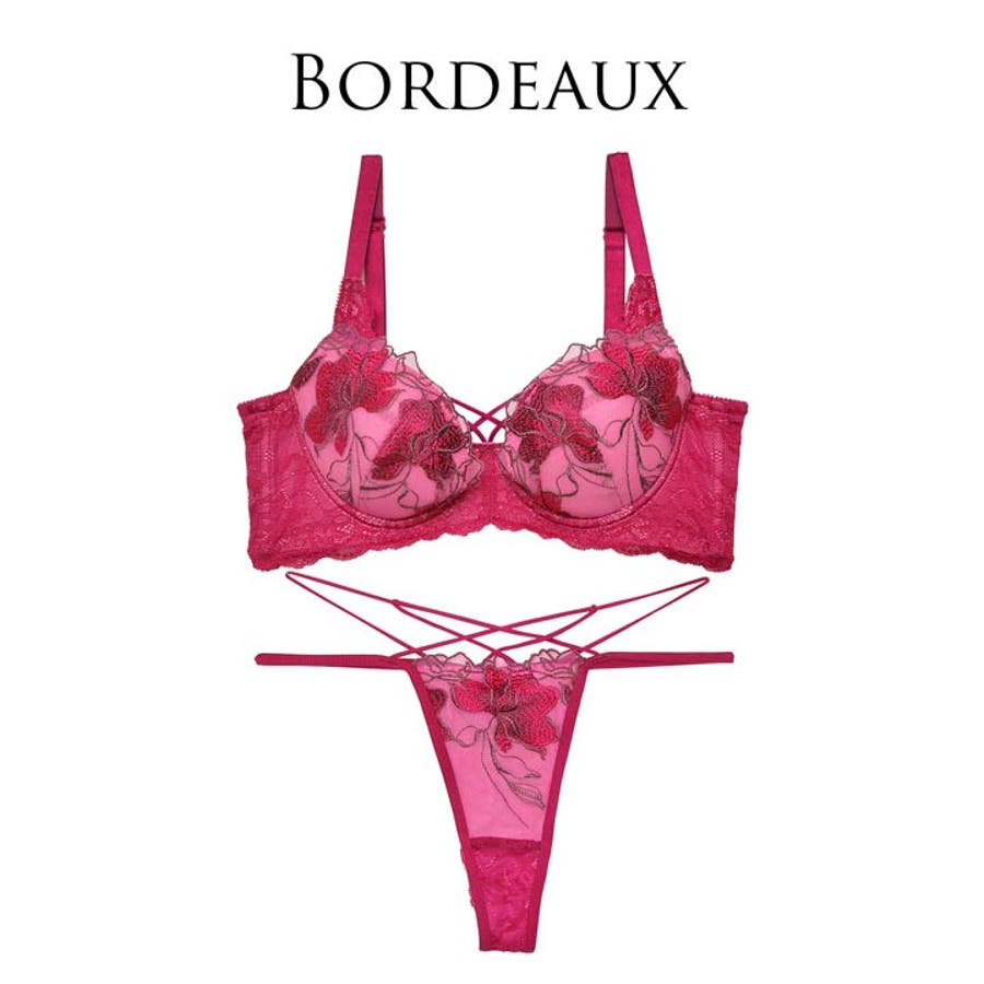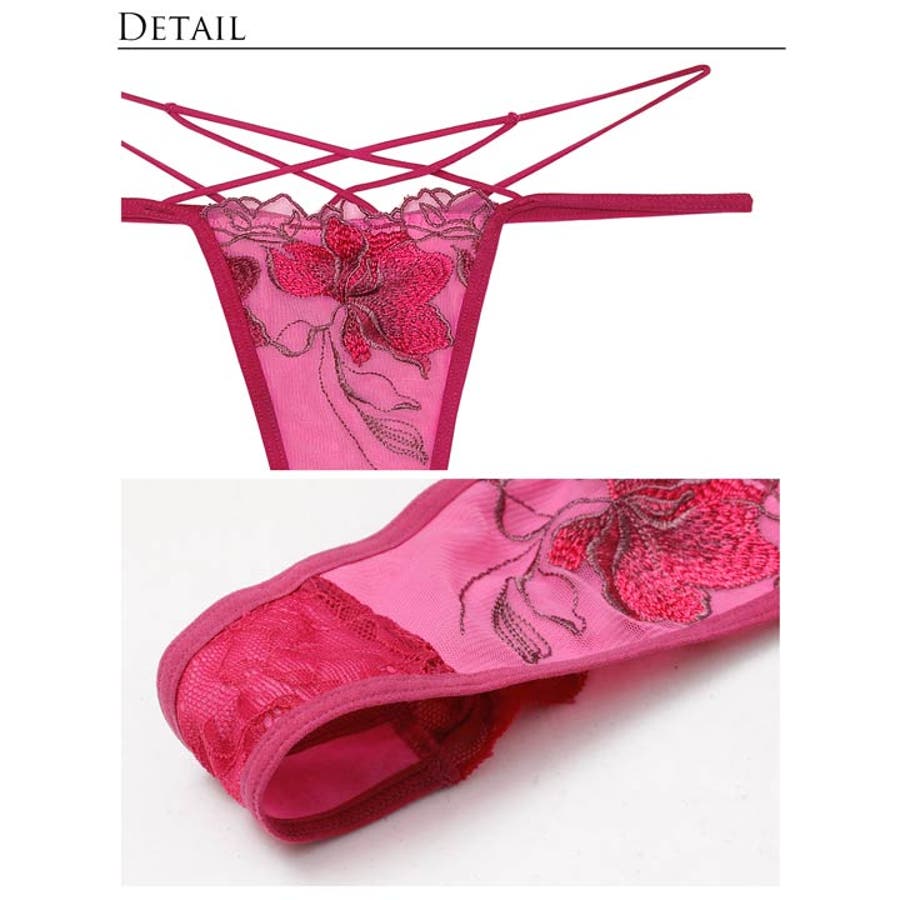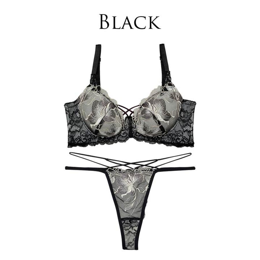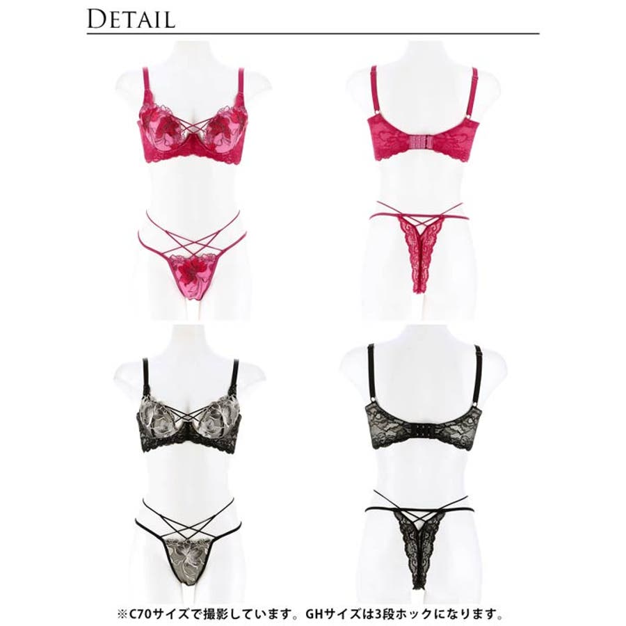 華麗に咲き誇るフラワー刺繍と大胆な谷間カットが大人な女性らしい色気を放つランジェリー。クロスされたカットアウト部分やショーツの絡み合うストリングが曲線美を演出します。360度セクシーさ溢れるレース仕様のバック透けも魅力的な1着です◎
