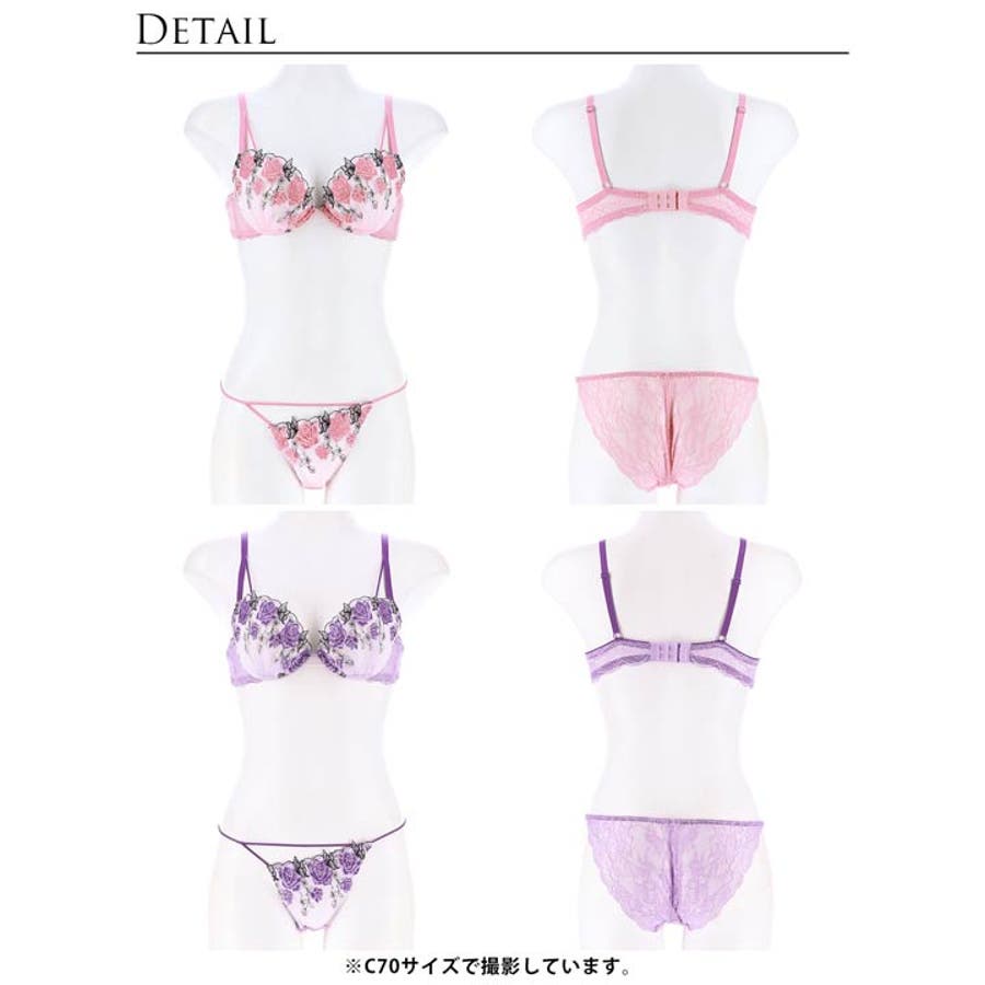 繊細に刺繍された薔薇の花々が浮かび上がる上品なランジェリー。薔薇の周りには優雅な蝶々があしらわれ華やかさを加えてくれます。ショーツはさりげないフロントカットと華奢なストリングがセクシーなデザインです♪