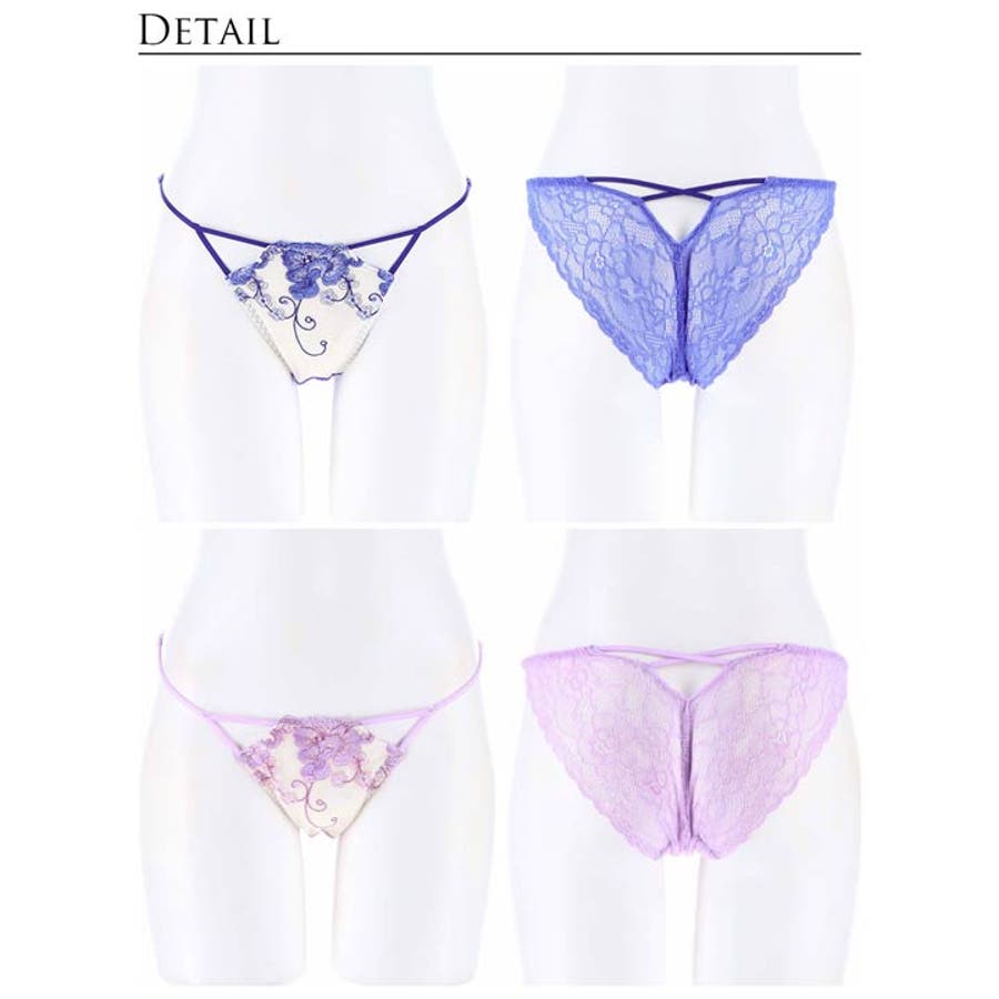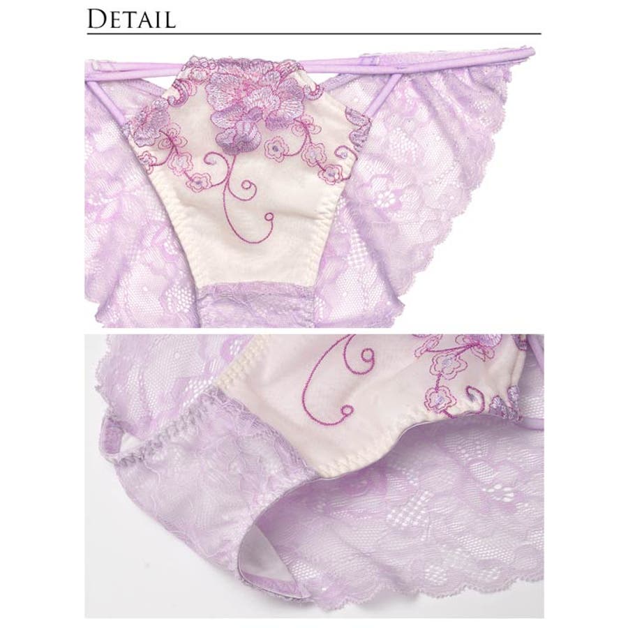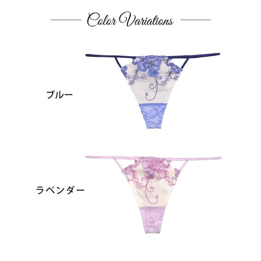 パステルカラーをベースにしたフラワー刺繍が高級感漂うランジェリー。大胆なフロントカットや華奢なコード使いは女性らしい曲線美を演出します。 後ろ姿からも色気を欠かさない程よいレースの肌透けも心地良い1着です◎