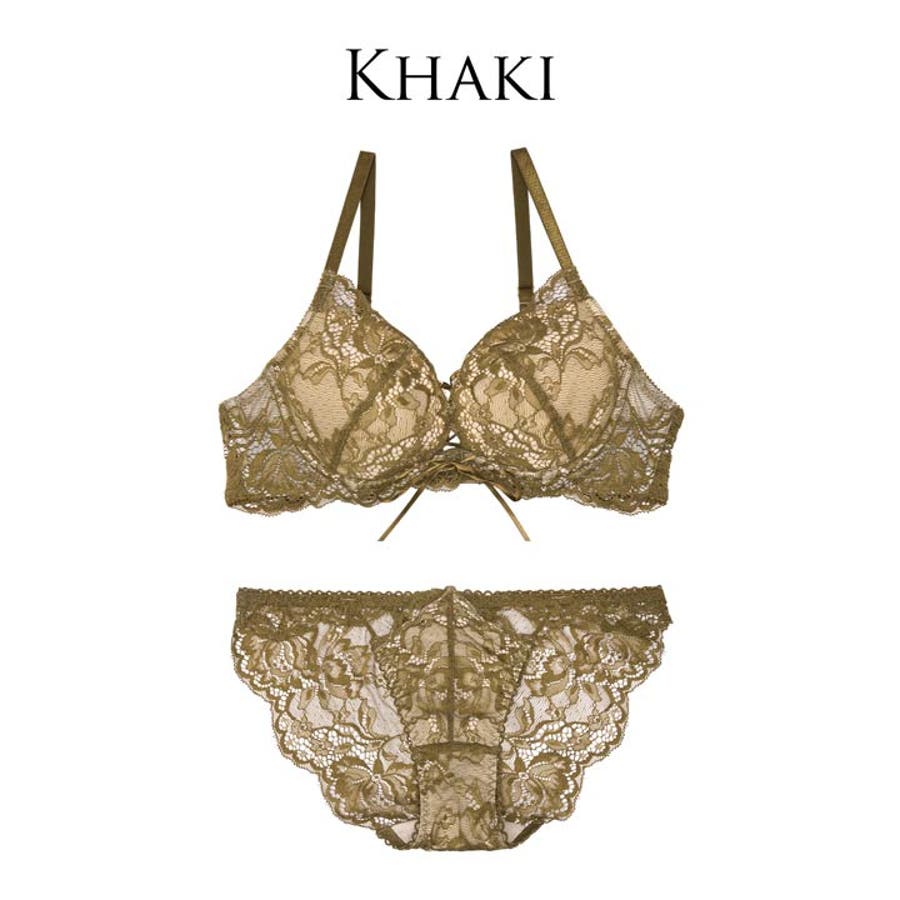 大胆な谷間魅せ部分に繕うレースアップが華やかなランジェリー。カットアウトや華奢なコード間から見える素肌魅せが視線を釘付けに。全体を覆う繊細なレースデザインで女性らしい上品さを演出してくれる1着です。