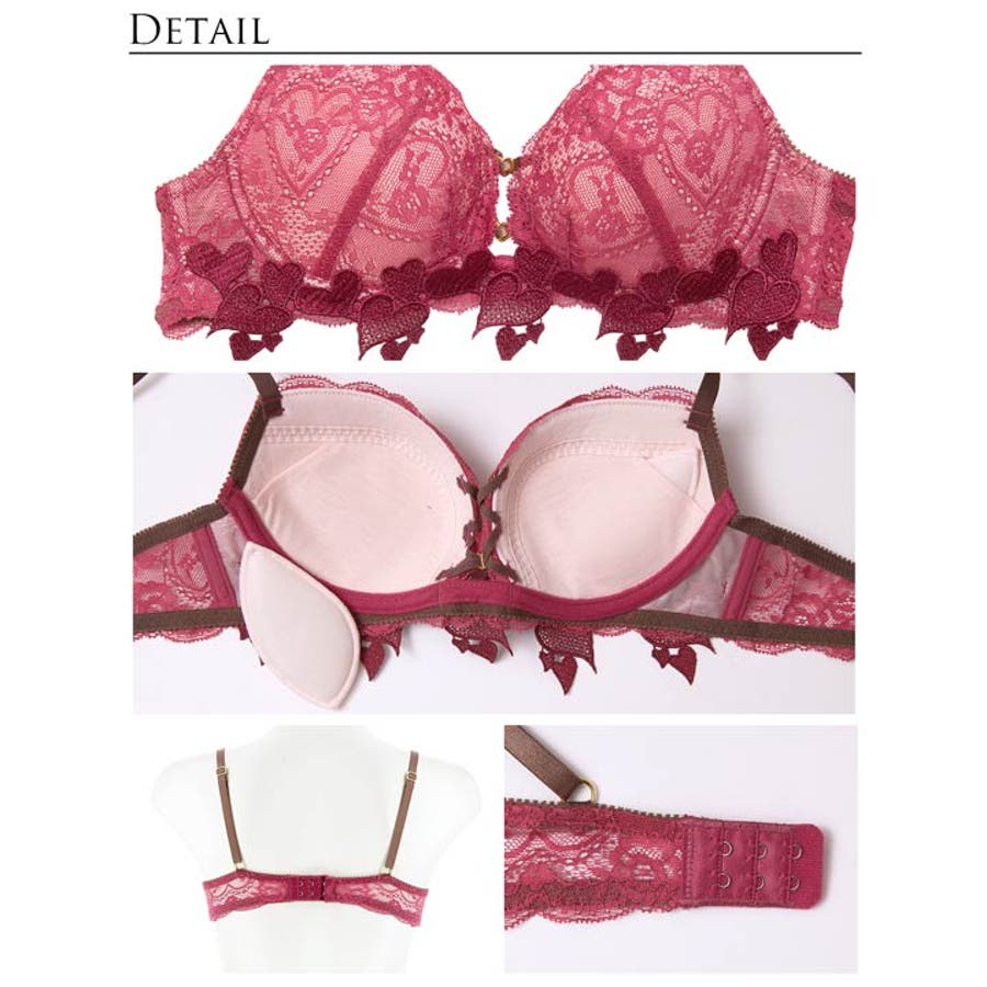 甘酸っぱいベリーカラーにたっぷりのハート刺繍とセクシーなストリングを掛け合わせたランジェリー。中央のレースアップデザインにもハートのビジューを加え大人かわいいアクセントに◎ バック透け仕様なので上品に素肌見せ出来るのも魅力的な1着です。モデル…せいせい(田向星華)