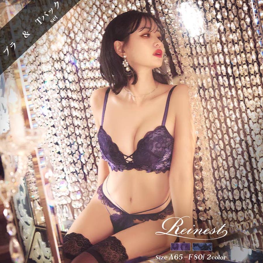 [永尾まりや着用][Reinest]ボタニカルレースアップカットブラジャー&バッ…