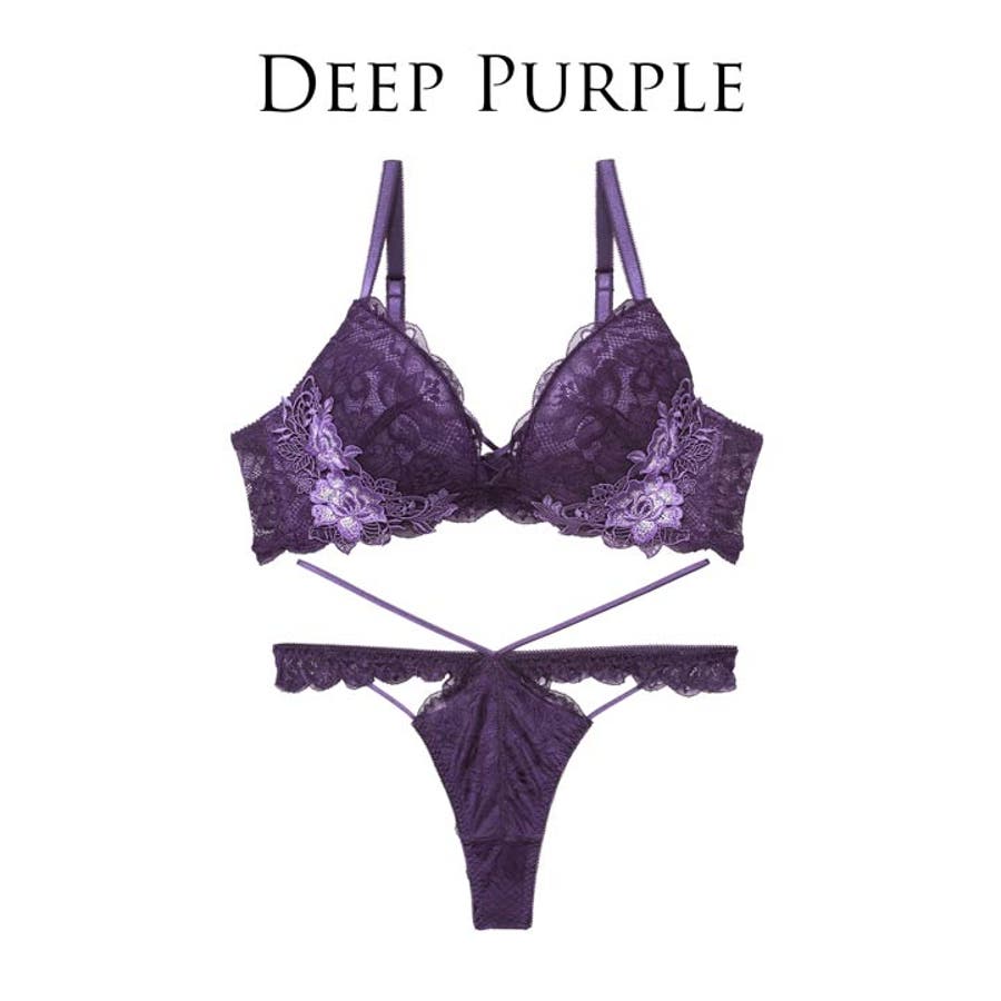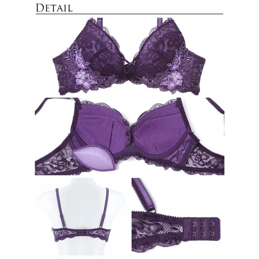 左右にあしらわれた立体的なボタニカル刺繍が美しいランジェリー。大胆な谷間魅せに差し掛かるレースアップが妖艶さを際立たせます◎ スカラップ型にカットされたレースから見える刺激的な肌魅せが視線を奪う1着です。
