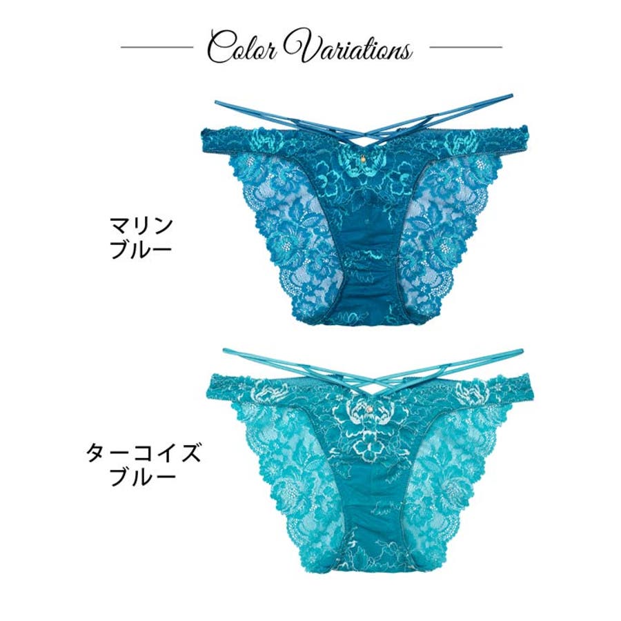 海を連想させるような美しいブルーにフラワー刺繍をあしらった夏らしいランジェリー。