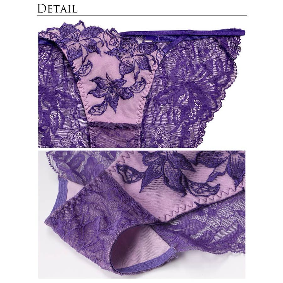 ショーツ:フルバック/クロッチ当て布:有/股上:普通/伸縮性:有/フロントサイド透けあり