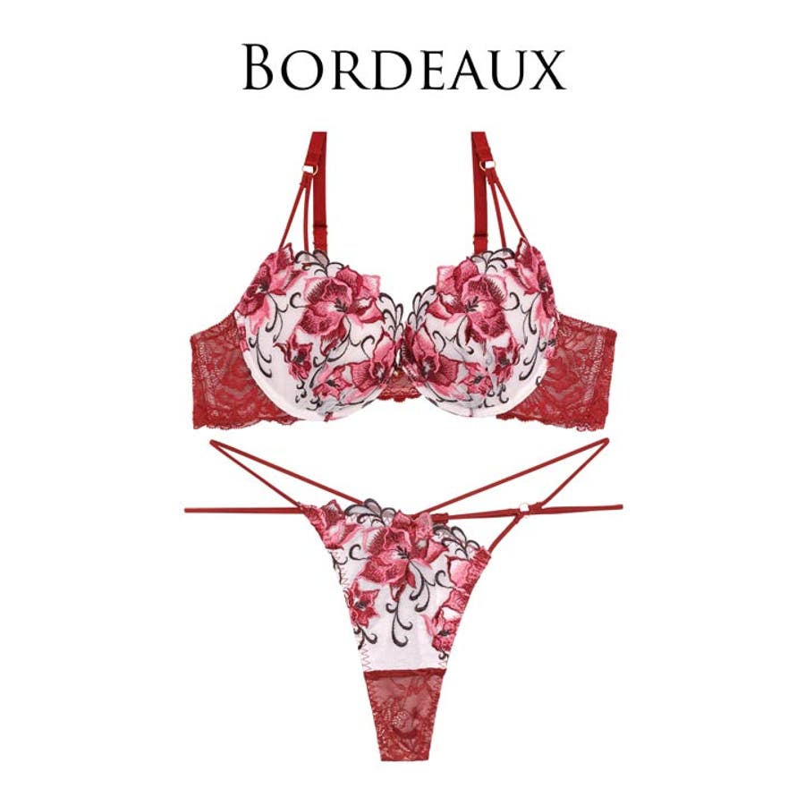 鮮明なフラワーと優雅に流れるアイビー刺繍を贅沢にあしらったランジェリー。リングから連なる華奢なWストリングは妖艶さを引き立たせるアクセントに。後ろ姿全面にも繊細なレース素材を使用し上品な肌透けを叶える1着です。モデル…せいせい(田向星華)