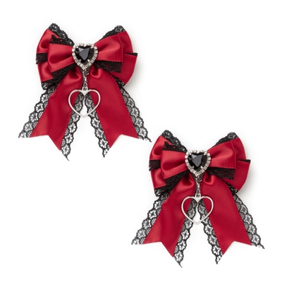 キラキラハートビジュー2個セットリボンクリップ 量産型 地雷系 夢展望