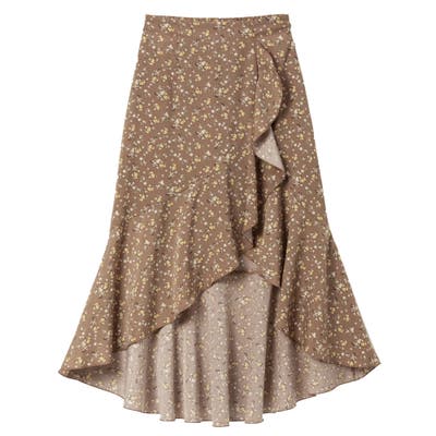 花びらみたいにふわりとなびくヘムが女の子らしく華やかな印象にしてくれるマーメイドスカート。