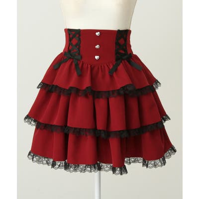 レースアップデザインにハートがかわいいウエスト爆盛れフリルスカート