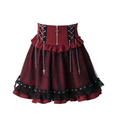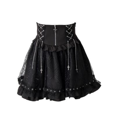 クロスチェーンハトメテープクモレースフリルスカート 量産型 地雷系 夢展望