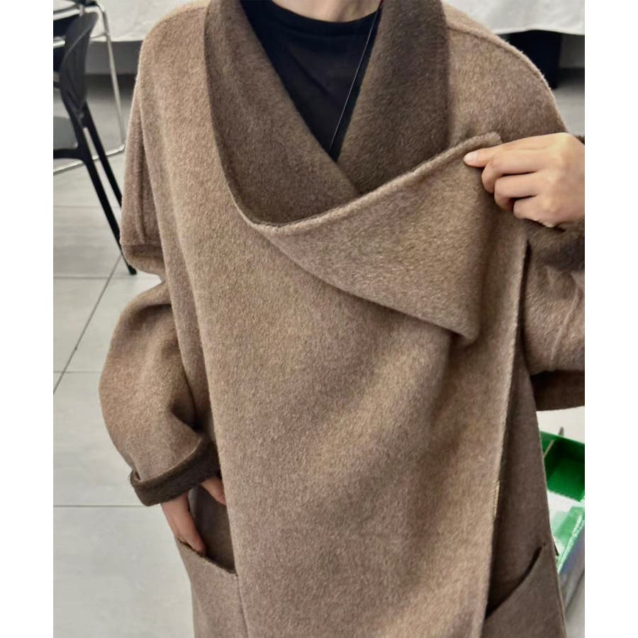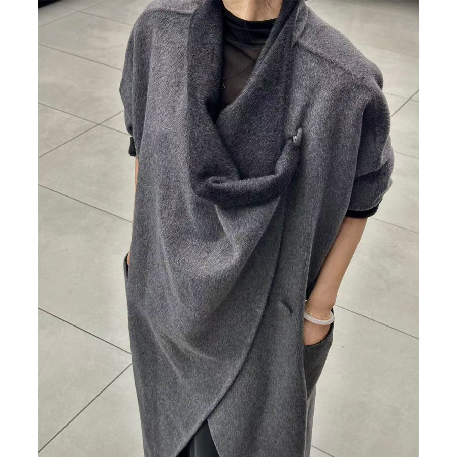 ドレープカラーデザイン ウールアシンメトリーコート【AW】
