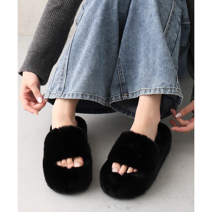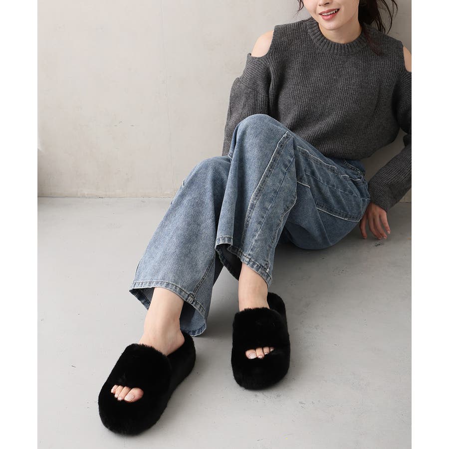 【25年秋冬新作】厚底 プラットフォーム ファーサンダル