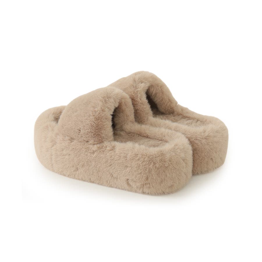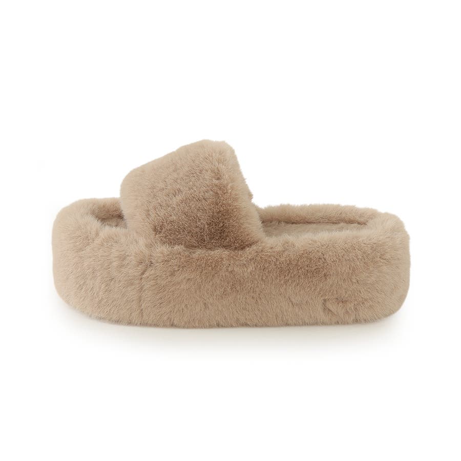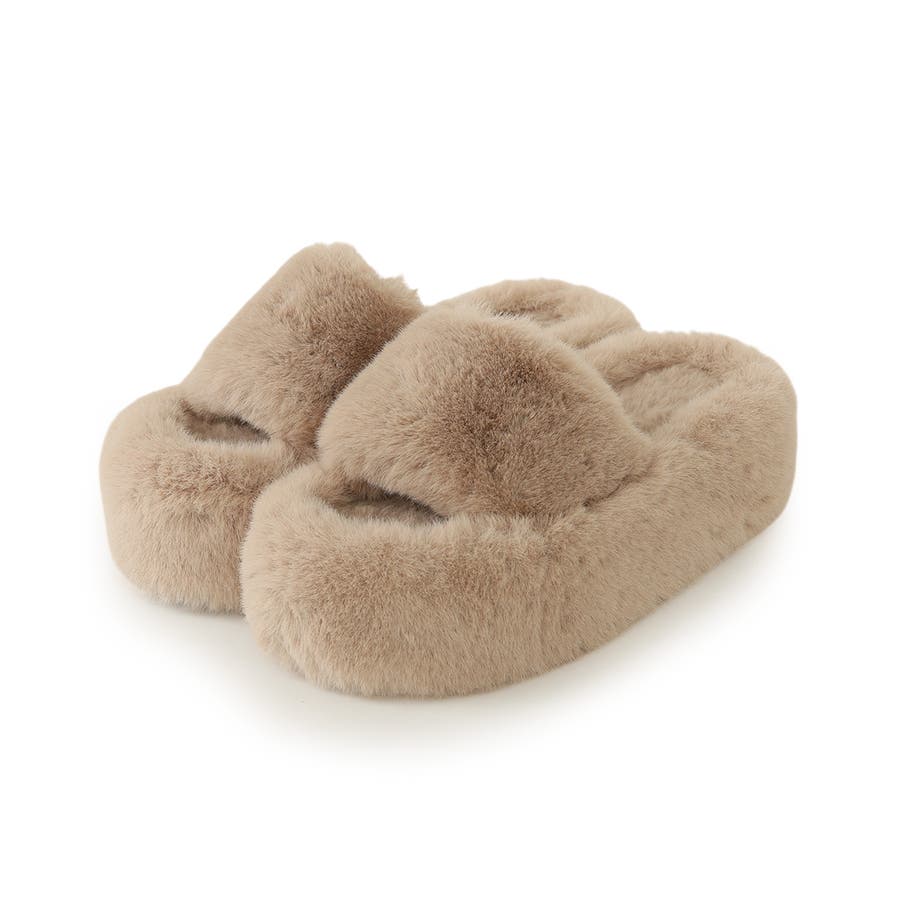 もこもこ感が可愛い、厚底スリッパサンダル!