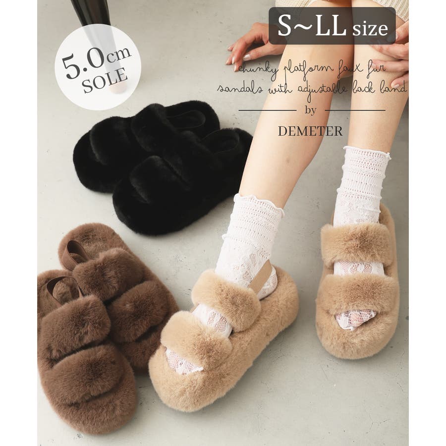 レディース/DMTR/DEMETER/デメテル/シューズ/靴/パンプス/スニーカー/ダッドスニーカー/ボリュームスニーカー/サンダル/ローファー/マニッシュ/ブーツ/ショートブーツ/ロングブーツ/ヒール/チャンキーヒール/太ヒール/厚底/厚底ソール/ボリュームソール/プラットフォーム/バルキー/美脚/脚長/人気/プチプラ/韓国/韓国ファッション/おすすめ/カジュアル/キレイめ/おしゃれ/オシャレ/お洒落/秋/冬/秋冬/秋物/冬物/春/夏/春夏/春物/夏物/新作/AW/SS/セクシー/大人/ストリート/シンプル/ボリューム/バックストラップ/ストラップ/バックバンド/ゴムバンド/ストラップサンダル/バックストラップサンダル/サンダル/ファー/フェイクファー/ふわふわ/もこもこ/ファーサンダル/安定感/厚底サンダル/厚底ファーサンダル/歩きやすい/履きやすい/S/M/L/LL/黒/BLACK/ブラック/ベージュ/BEIGE/ダークブラウン/ブラウン/BROWN