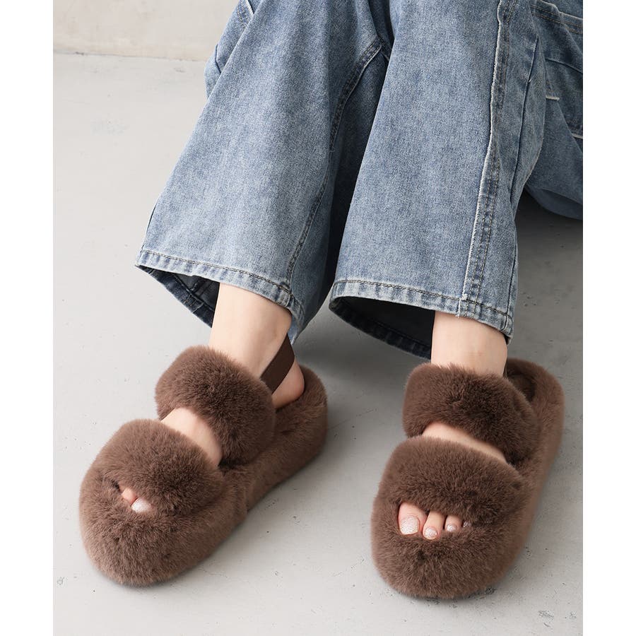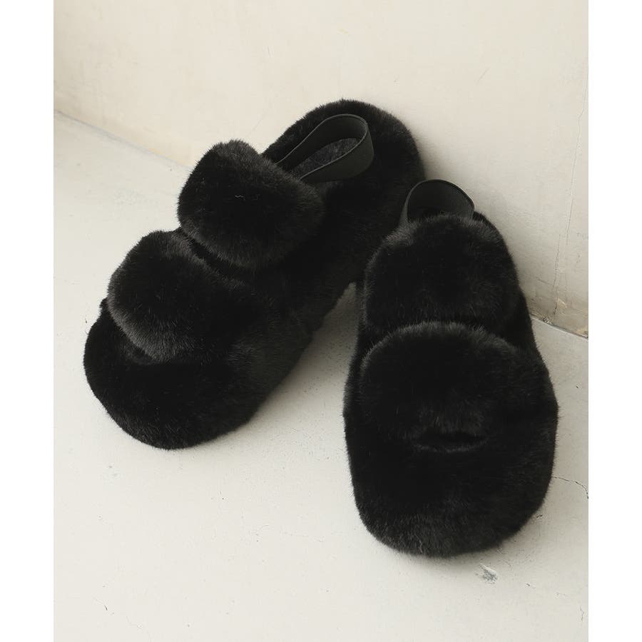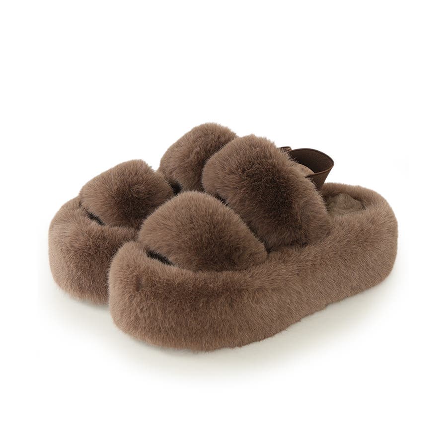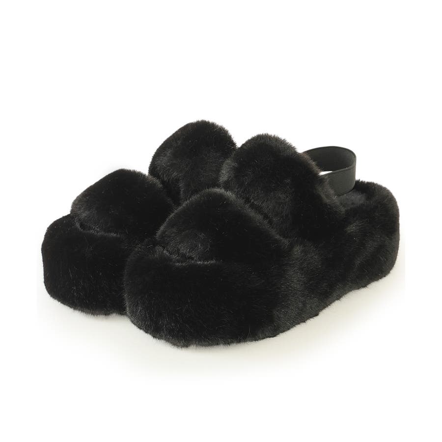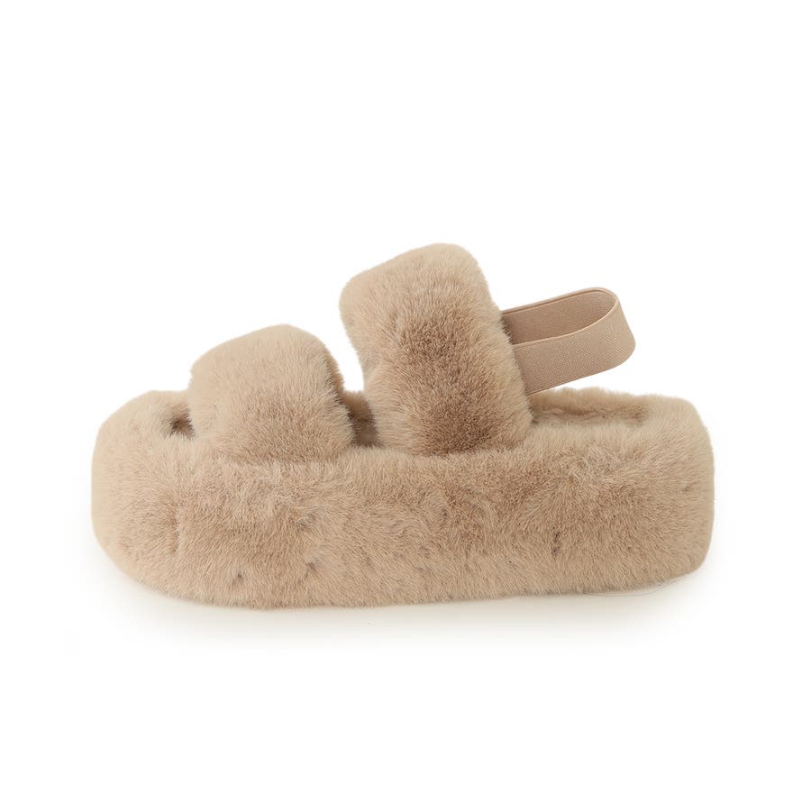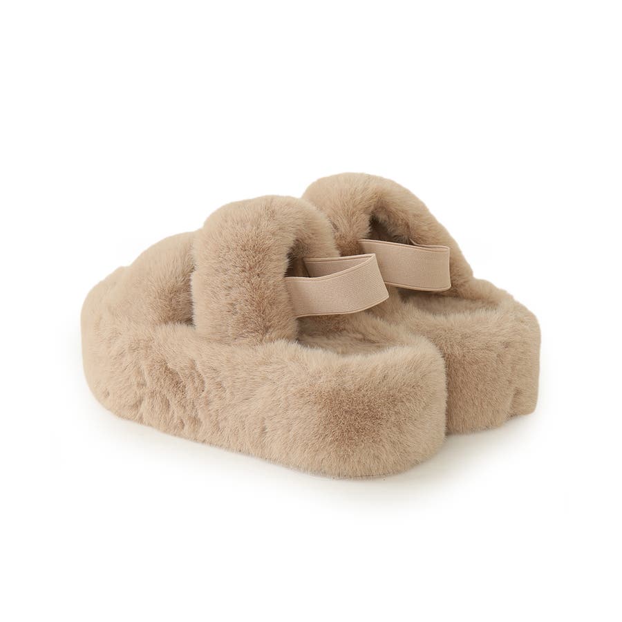 【25年秋冬新作】厚底 プラットフォーム バックバンド ファーサンダル
