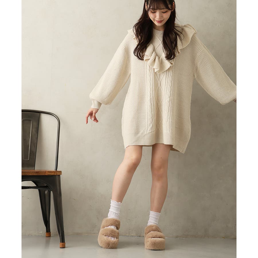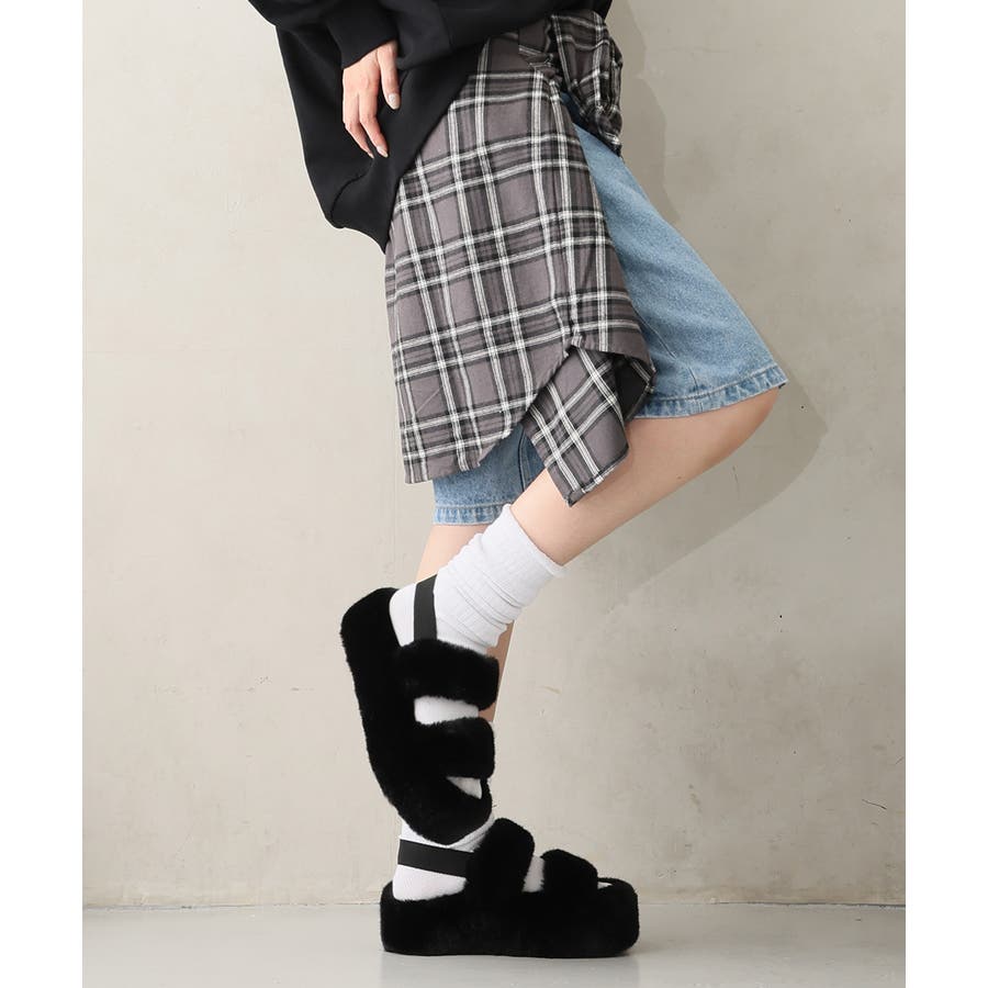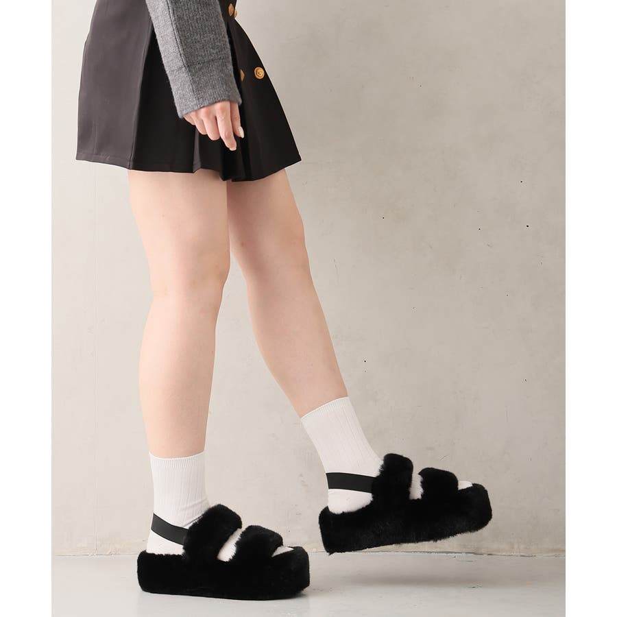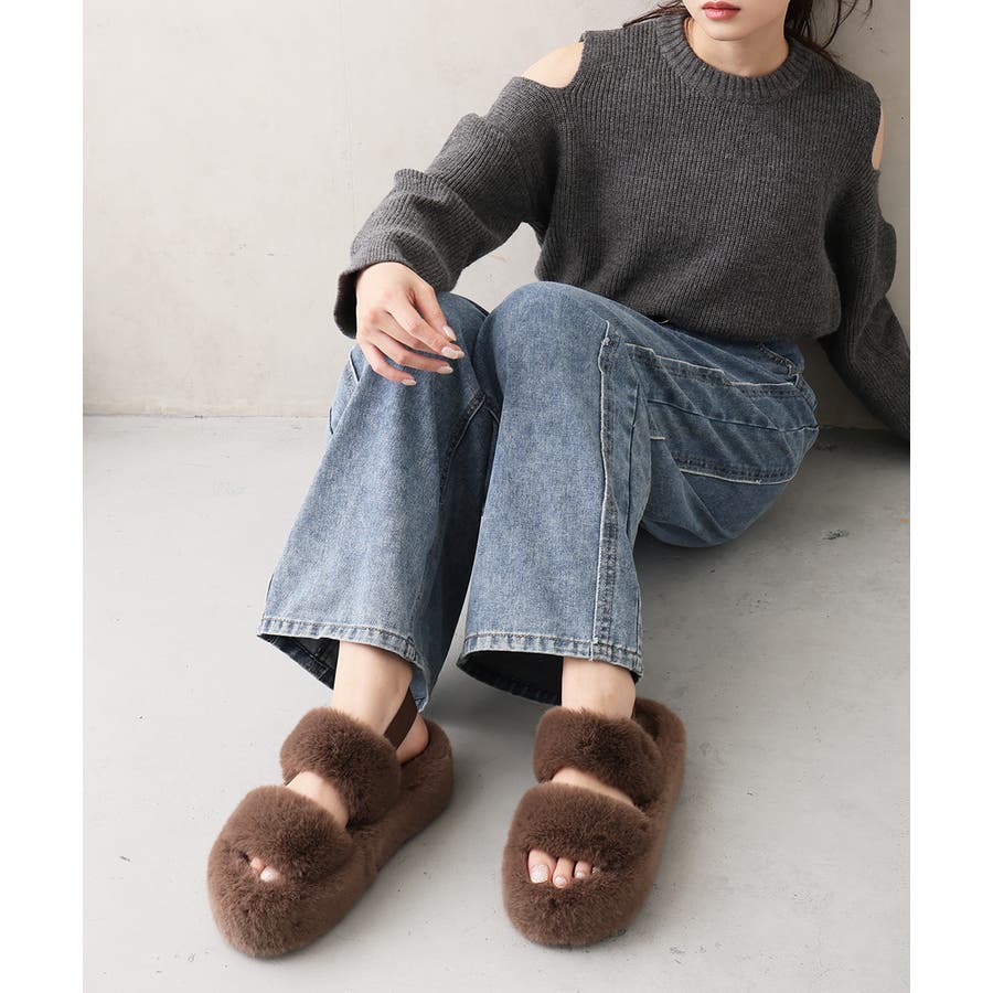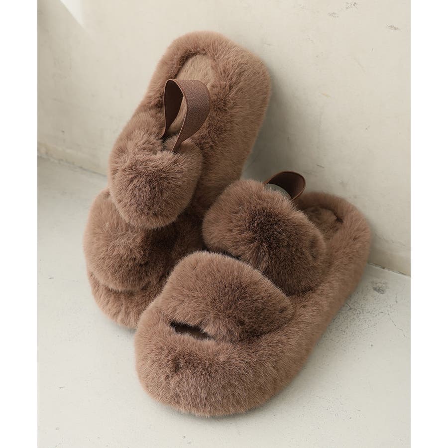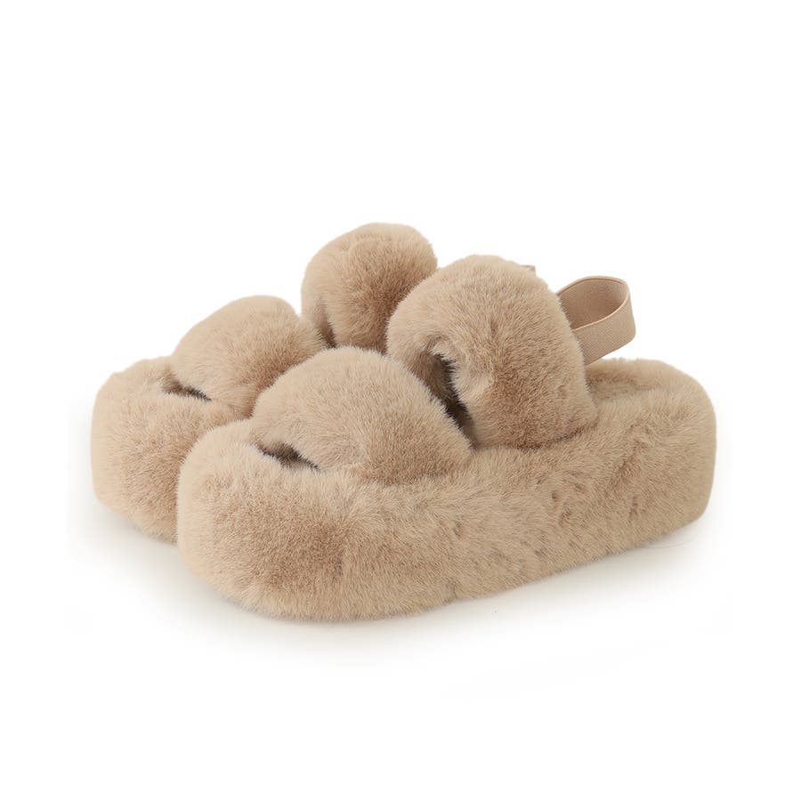 【25年秋冬新作】厚底 プラットフォーム バックバンド ファーサンダル