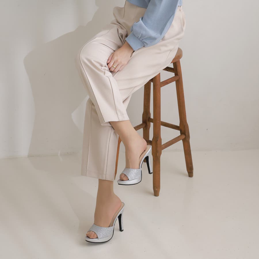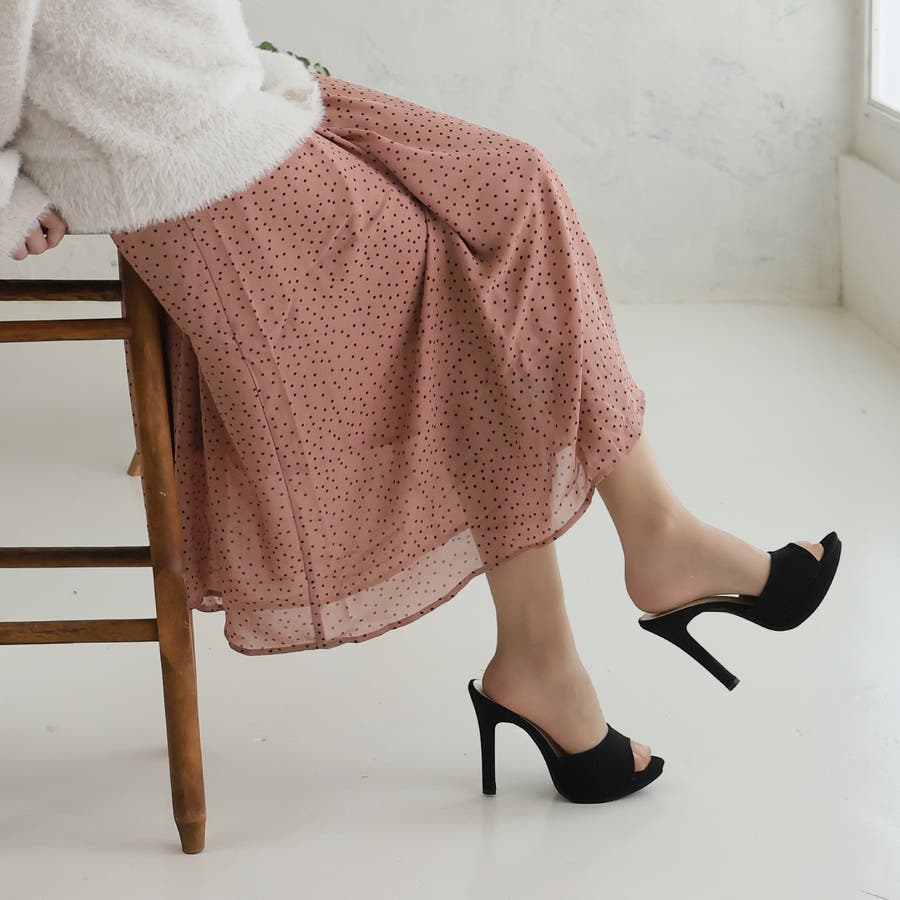 スラリと伸びたピンヒールで、エレガントな美脚を演出するミュールサンダル!