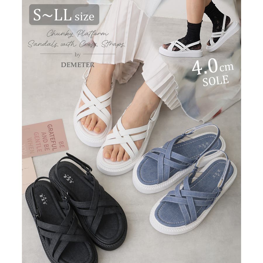 レディース/DMTR/DEMETER/デメテル/シューズ/靴/パンプス/スニーカー/ダッドスニーカー/ボリュームスニーカー/サンダル/ローファー/マニッシュ/ブーツ/ショートブーツ/ロングブーツ/ヒール/チャンキーヒール/太ヒール/厚底/厚底ソール/ボリュームソール/プラットフォーム/バルキー/美脚/脚長/人気/プチプラ/韓国/韓国ファッション/おすすめ/カジュアル/キレイめ/おしゃれ/オシャレ/お洒落/秋/冬/秋冬/秋物/冬物/春/夏/春夏/春物/夏物/新作/AW/SS/セクシー/大人/ストリート/シンプル/クロスデザイン/クロスストラップ/ストラップ/ストラップサンダル/バックル/バックルサンダル/バックルストラップ/ソックス/ソックスコーデ/カジュアル/デイリー/ベルクロ/安定感/軽い/軽量/厚底サンダル/プラットフォーム/リゾート/歩きやすい/履きやすい/S/M/L/LL/黒/BLACK/ブラック/白/WHITE/ホワイト/デニム/デニム生地