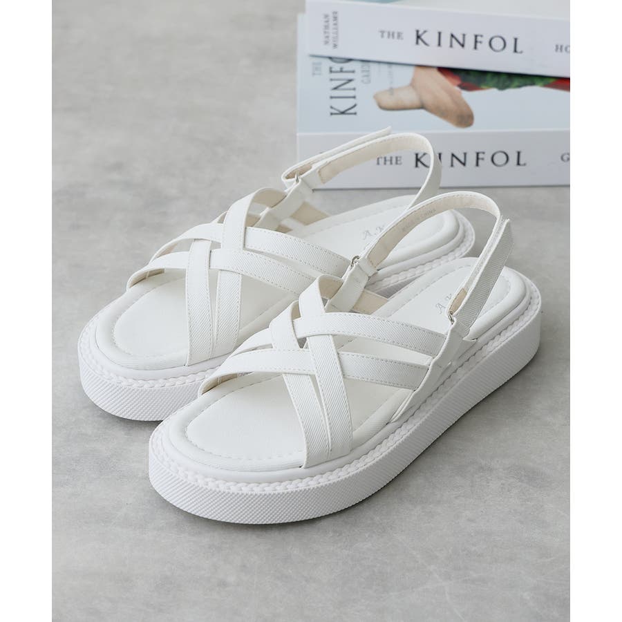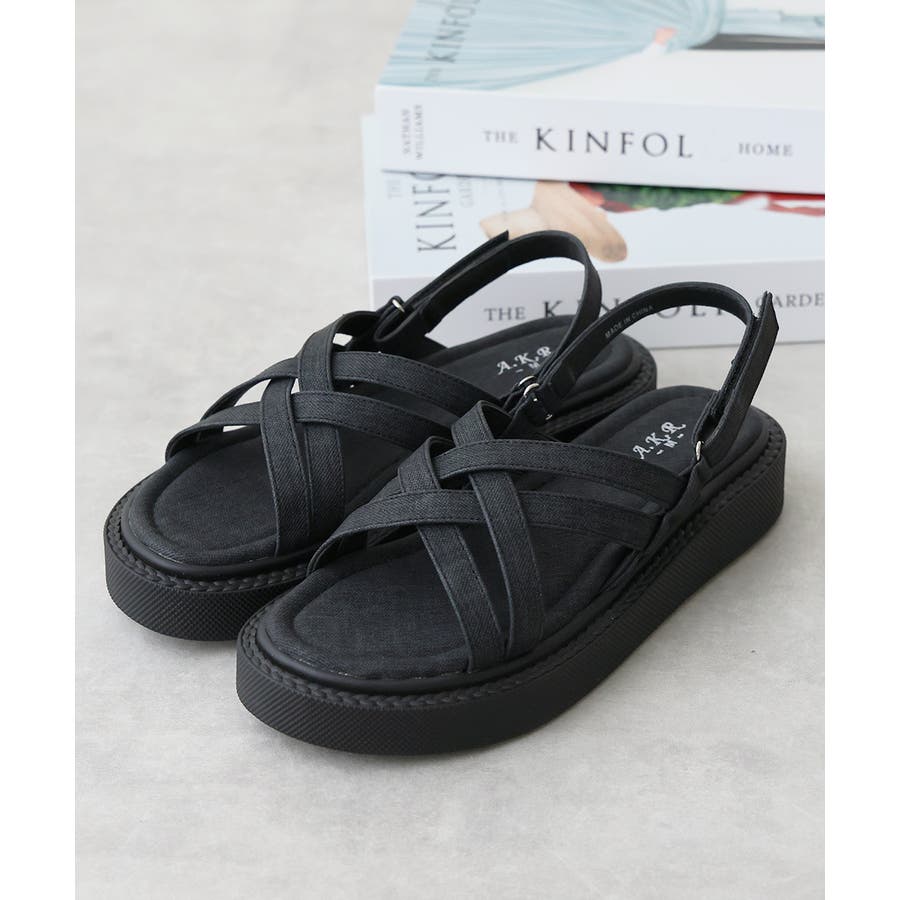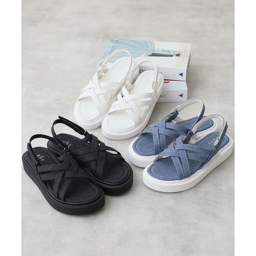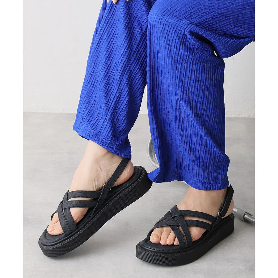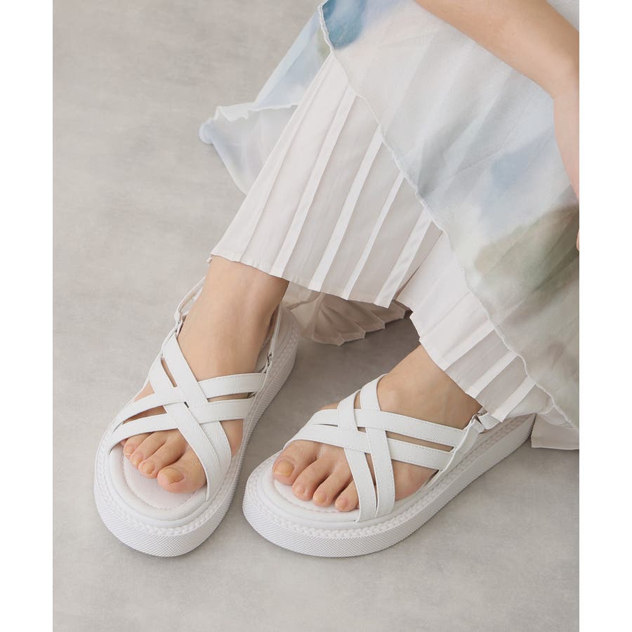 【25年春夏新作】軽量厚底 クロスデザイン ストラップサンダル