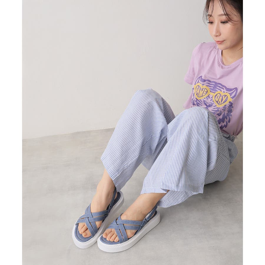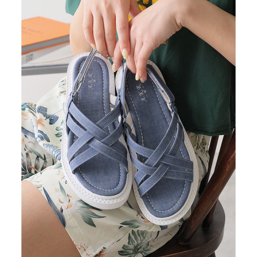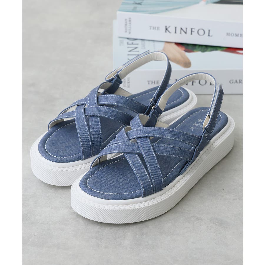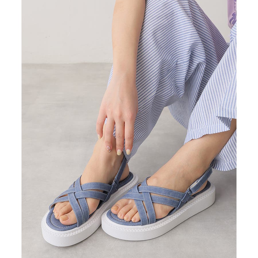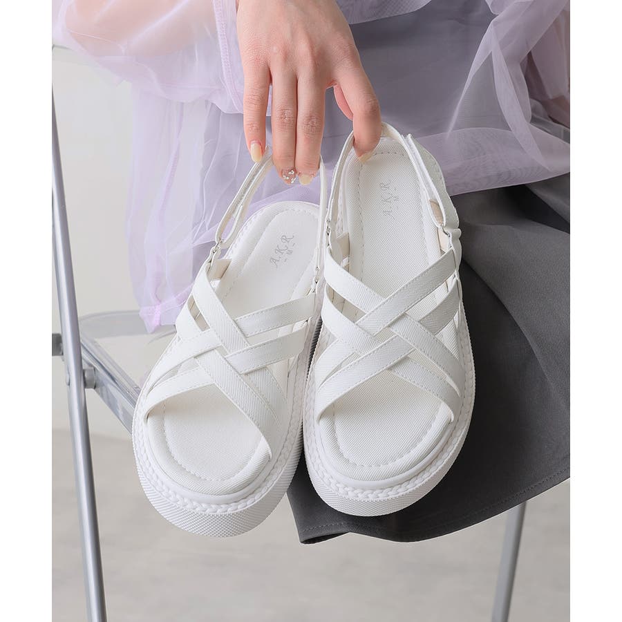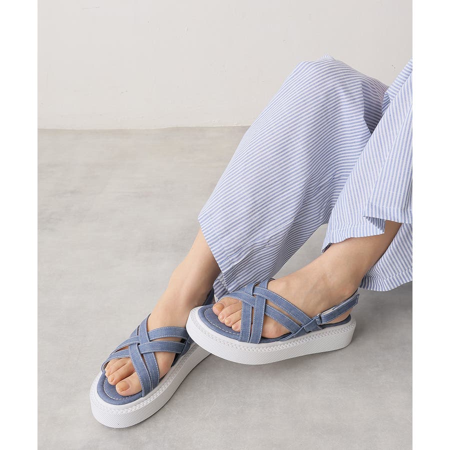 【25年春夏新作】軽量厚底 クロスデザイン ストラップサンダル