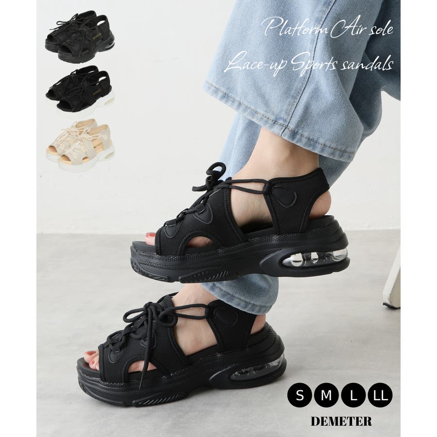 レディース/DMTR/DEMETER/デメテル/シューズ/靴/パンプス/スニーカー/ダッドスニーカー/ボリュームスニーカー/サンダル/ローファー/マニッシュ/ブーツ/ショートブーツ/ロングブーツ/ヒール/チャンキーヒール/太ヒール/厚底/厚底ソール/ボリュームソール/プラットフォーム/バルキー/美脚/脚長/人気/プチプラ/韓国/韓国ファッション/おすすめ/カジュアル/キレイめ/おしゃれ/オシャレ/お洒落/秋/冬/秋冬/秋物/冬物/春/夏/春夏/春物/夏物/新作/AW/SS/セクシー/大人/ストリート/シンプル/厚底サンダル/厚底スポーツサンダル/スポーツサンダル/スポサン/厚底スポサン/レースアップ/レースアップサンダル/エアー/エアーソール/エアー入り/歩きやすい/履きやすい/S/M/L/LL/黒/BLACK/ブラック/白/WHITE/ホワイト/IVORY/アイボリー