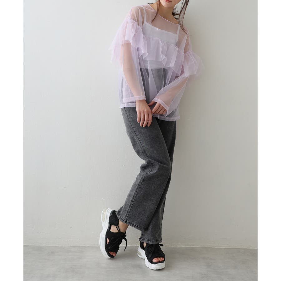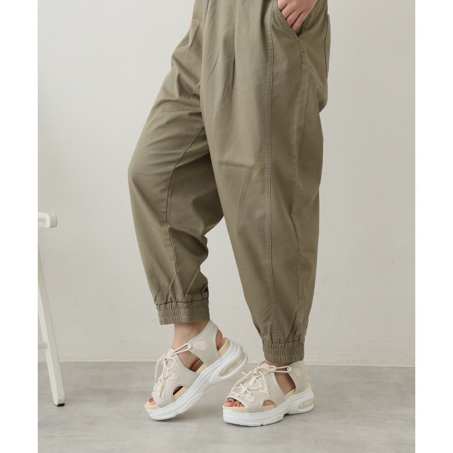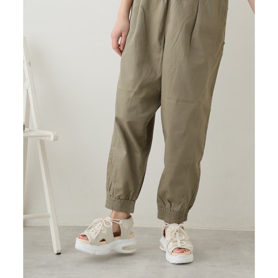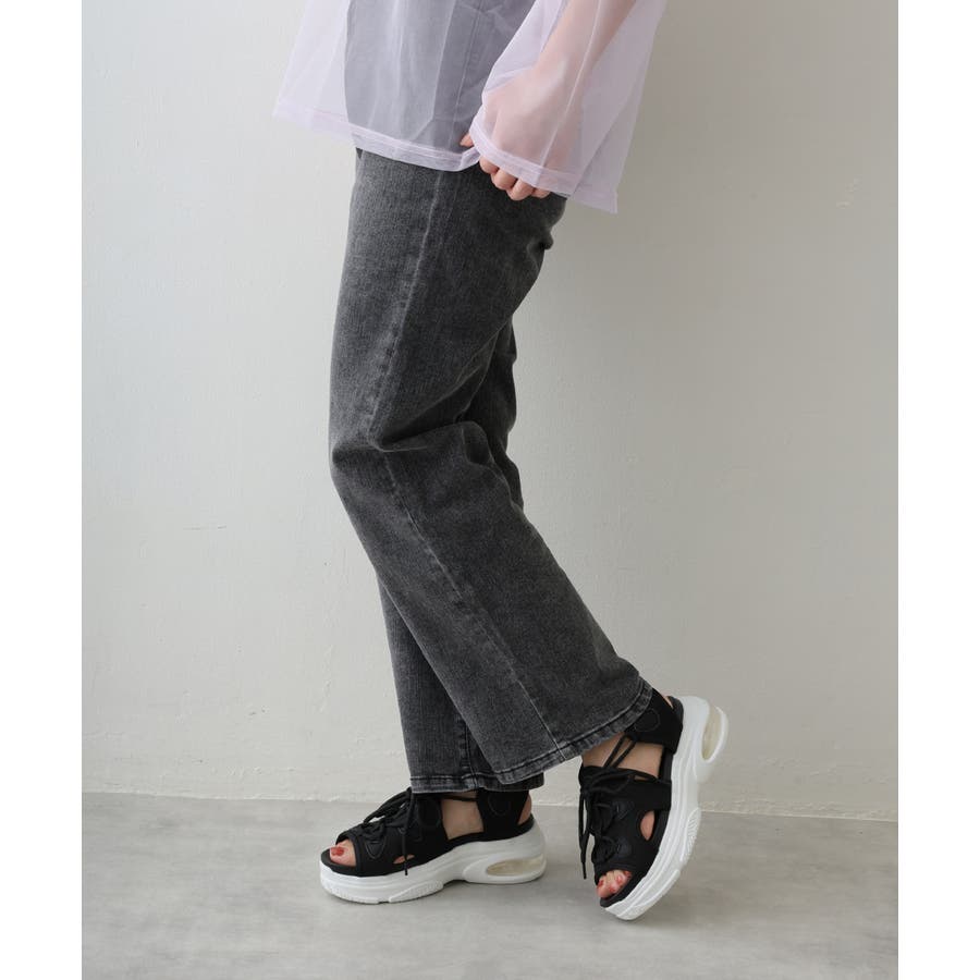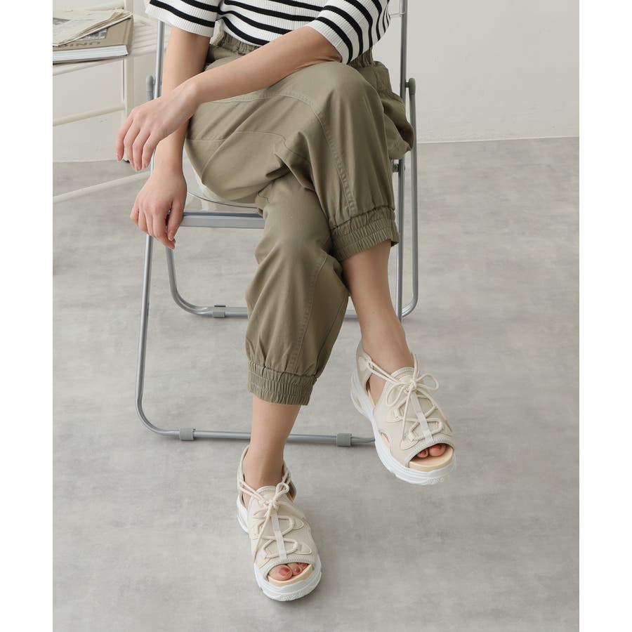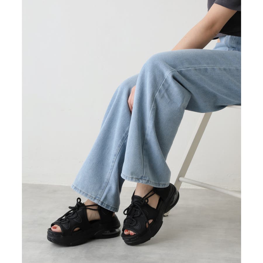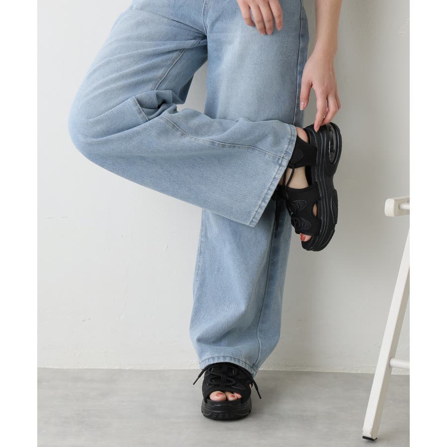 厚底デザインを活かして、ワイドパンツやロングスカートと合わせれば、スタイルアップ効果のあるトレンドコーデに。
