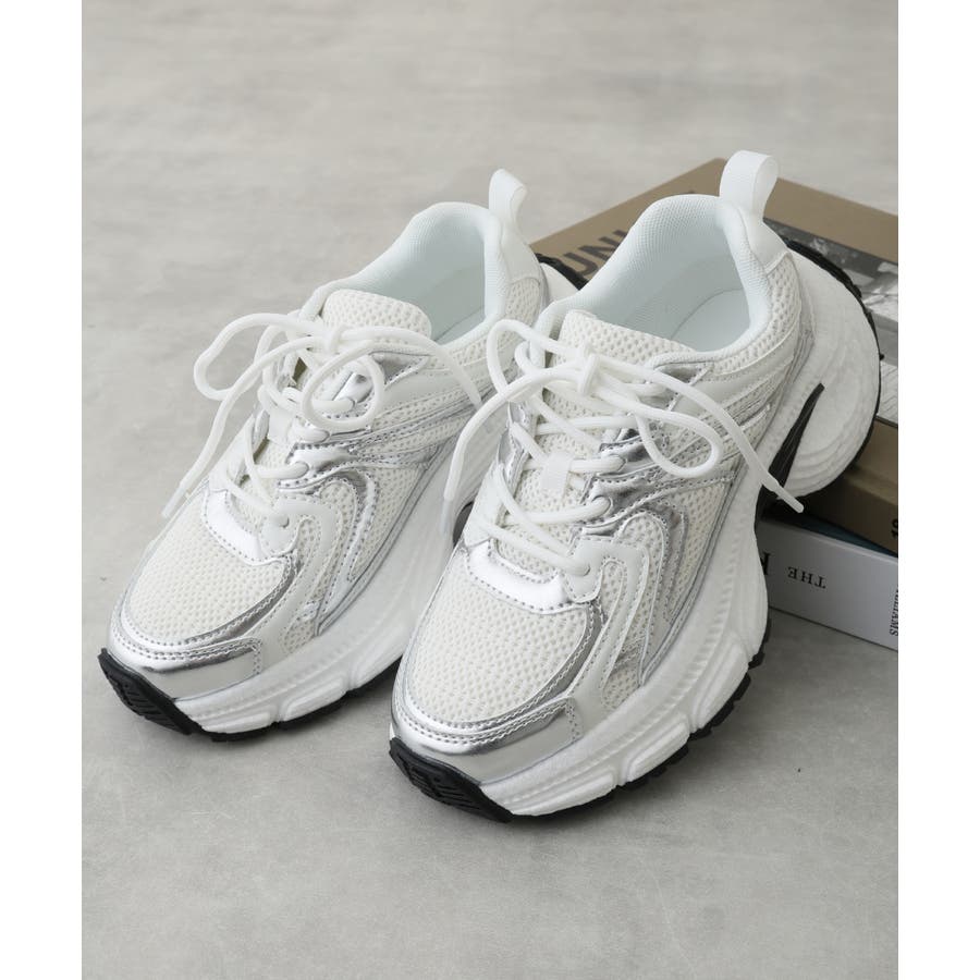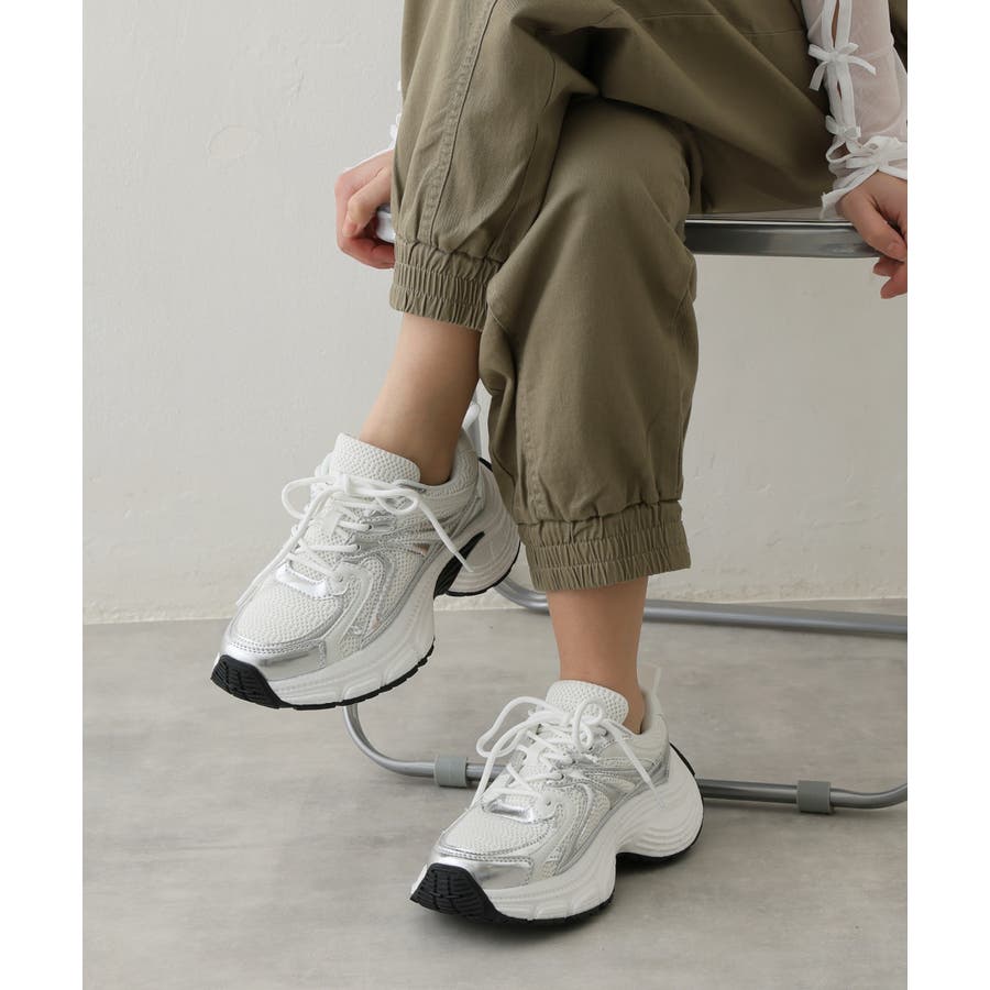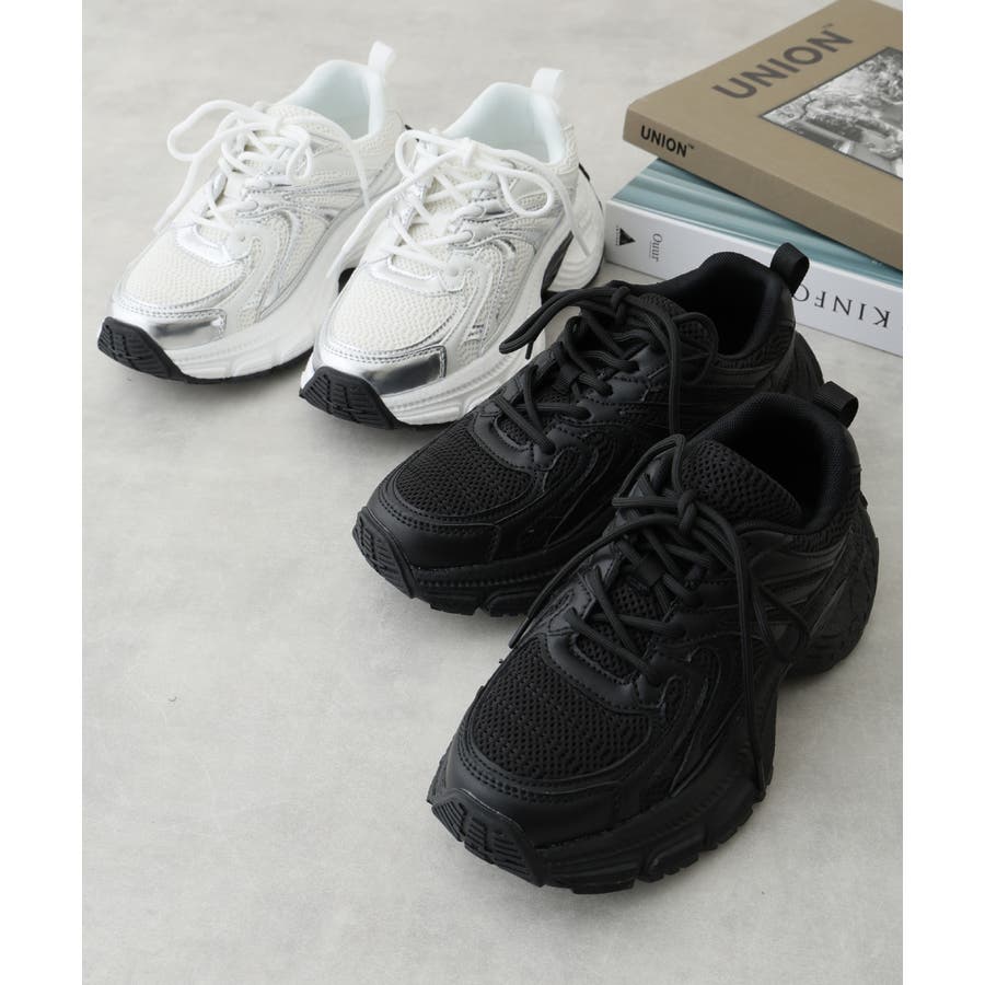 異素材コンビがアクセントのレースアップダッドスニーカー!