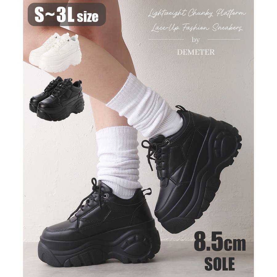 レディース/DMTR/DEMETER/デメテル/シューズ/靴/パンプス/スニーカー/ダッドスニーカー/ボリュームスニーカー/サンダル/ローファー/マニッシュ/ブーツ/ショートブーツ/ロングブーツ/ヒール/チャンキーヒール/太ヒール/厚底/厚底ソール/ボリュームソール/プラットフォーム/バルキー/美脚/脚長/人気/プチプラ/韓国/韓国ファッション/おすすめ/カジュアル/キレイめ/おしゃれ/オシャレ/お洒落/秋/冬/秋冬/秋物/冬物/春/夏/春夏/春物/夏物/新作/AW/SS/セクシー/大人/ストリート/シンプル/厚底スニーカー/レースアップ/レースアップスニーカー/ボリュームソール/プラットフォーム/Y2K/ワンカラー/ワンカラーコーデ/歩きやすい/履きやすい/S/M/L/LL/3L/XXL/大きいサイズ/黒/BLACK/ブラック/白/WHITE/ホワイト