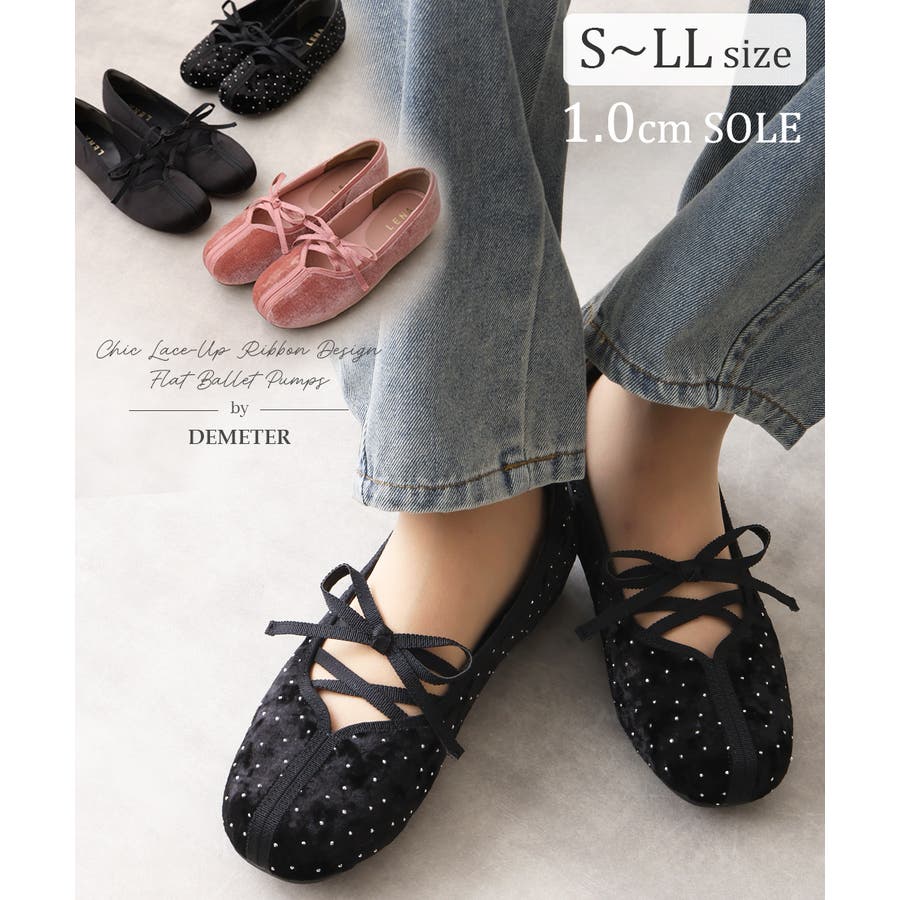 レディース/DMTR/DEMETER/デメテル/シューズ/靴/パンプス/スニーカー/ダッドスニーカー/ボリュームスニーカー/サンダル/ローファー/マニッシュ/ブーツ/ショートブーツ/ロングブーツ/ヒール/チャンキーヒール/太ヒール/厚底/厚底ソール/ボリュームソール/プラットフォーム/バルキー/美脚/脚長/人気/プチプラ/韓国/韓国ファッション/おすすめ/カジュアル/キレイめ/おしゃれ/オシャレ/お洒落/秋/冬/秋冬/秋物/冬物/春/夏/春夏/春物/夏物/新作/AW/SS/セクシー/大人/ストリート/シンプル/バレエコア/バレエシューズ/バレエパンプス/レースアップ/レースアップシュズ/ガーリー/フェミニン/ホットフィックス/スタッズ/ラインストーン/メタリック/メタルドット/パーツ/リボン/リボンパンプス/ぺたんこ/フラット/フラットパンプス/ローヒール/スタッズパンプス/デイリー/トレンド/クッション/安定感/歩きやすい/履きやすい/楽/低い/S/M/L/LL/黒/BLACK/ブラック/ピンク/PINK/サテン/サテン生地/ベロア/ベロア生地