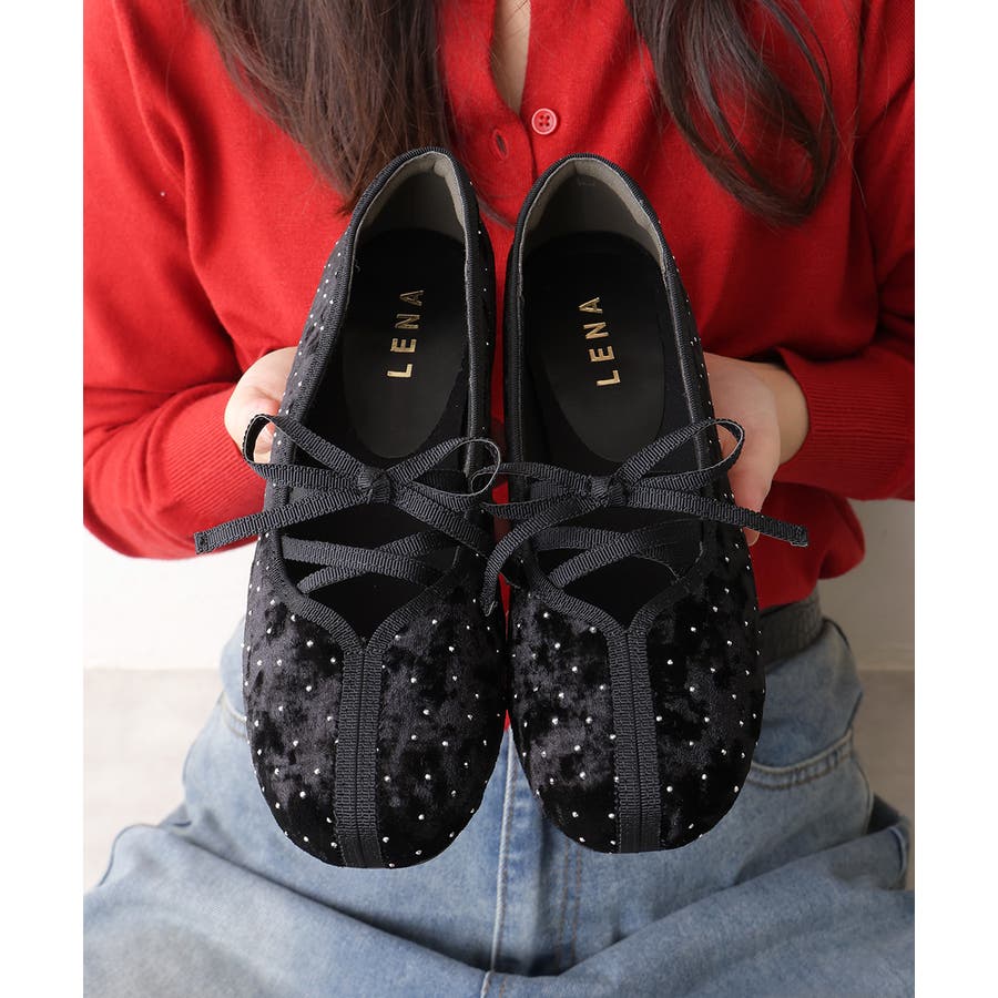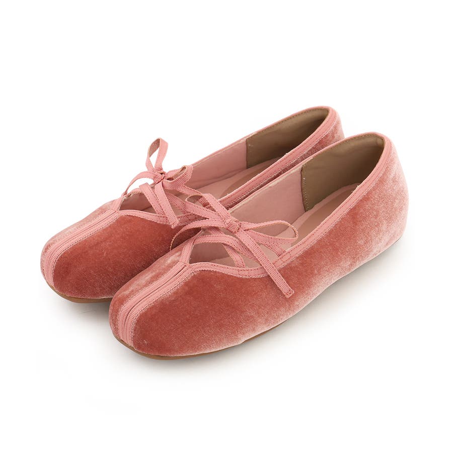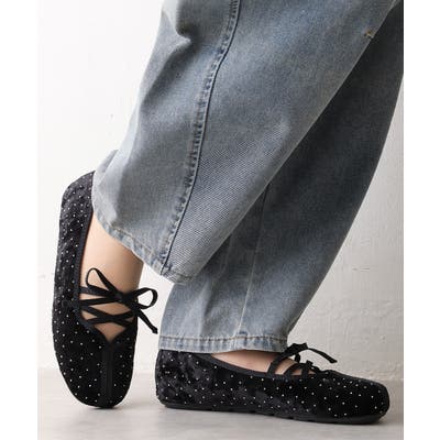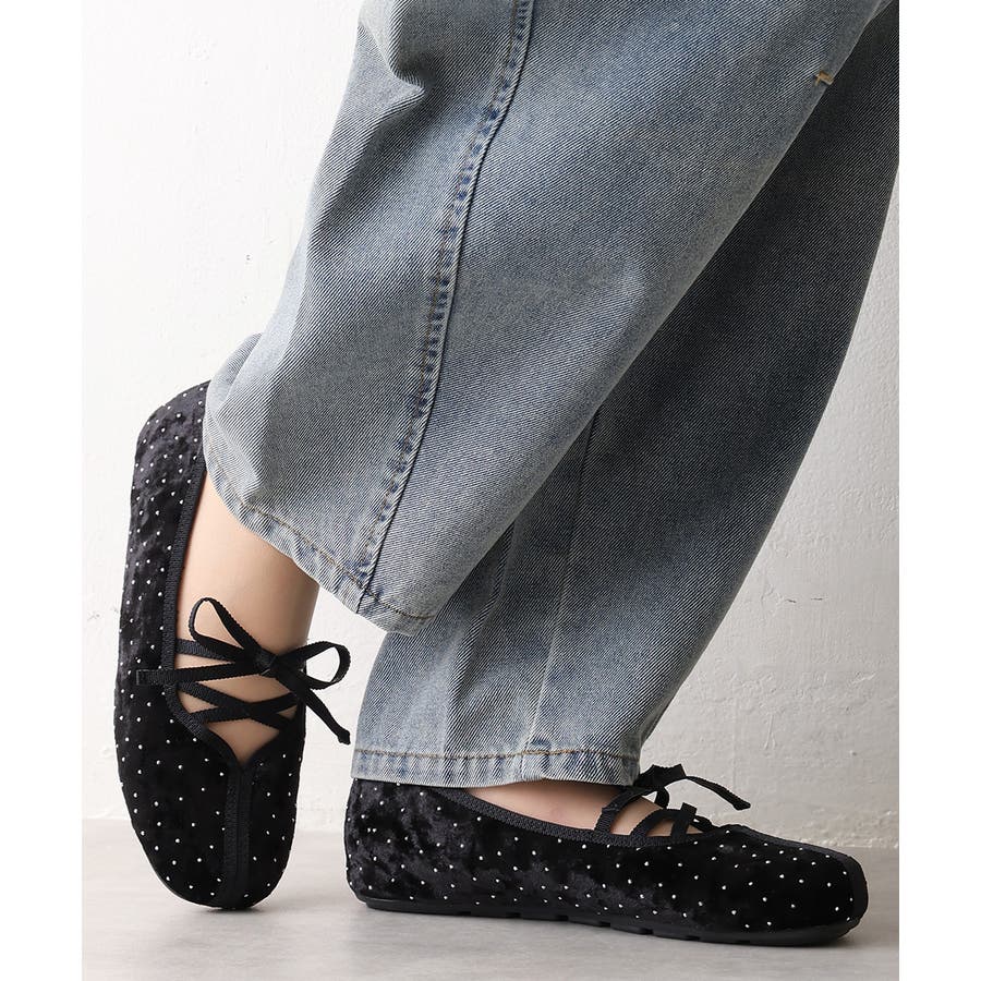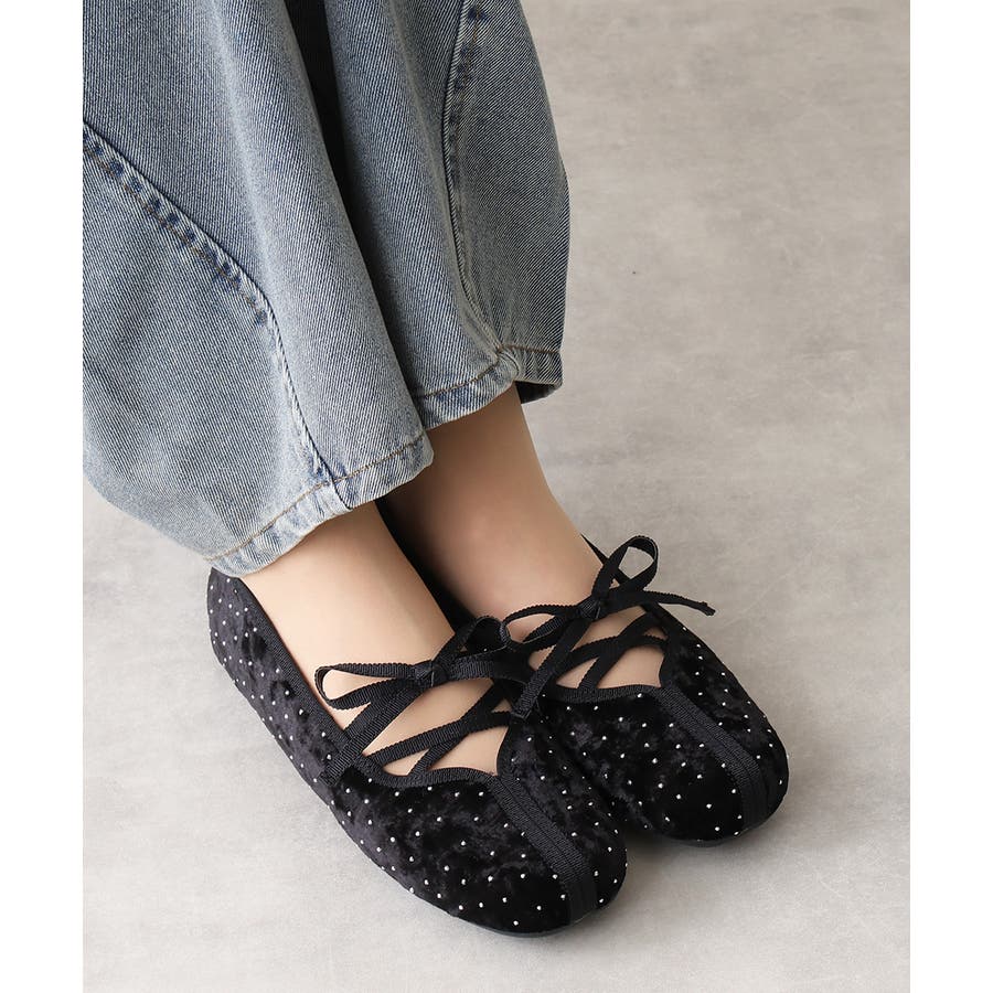 【25年秋冬新作】レースアップリボン フラット バレエパンプス