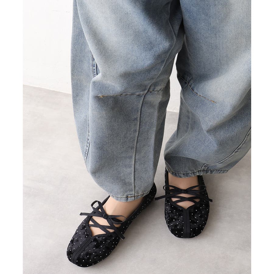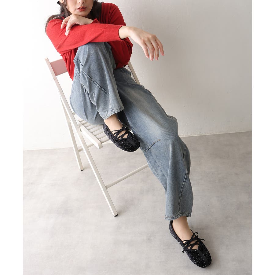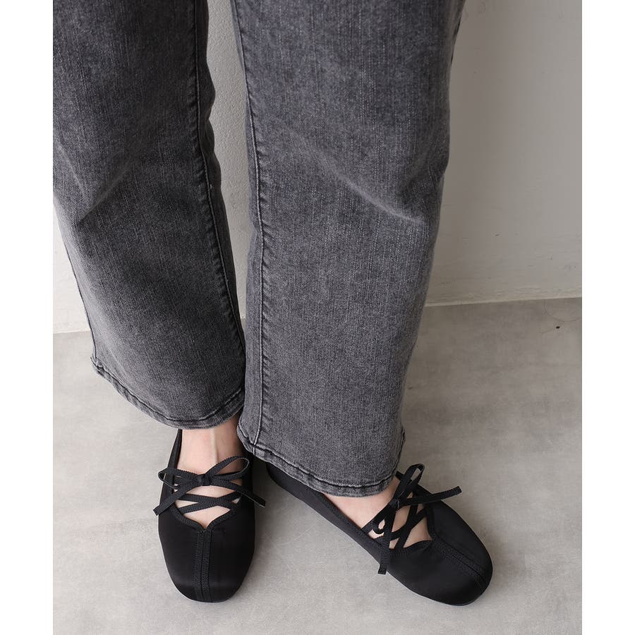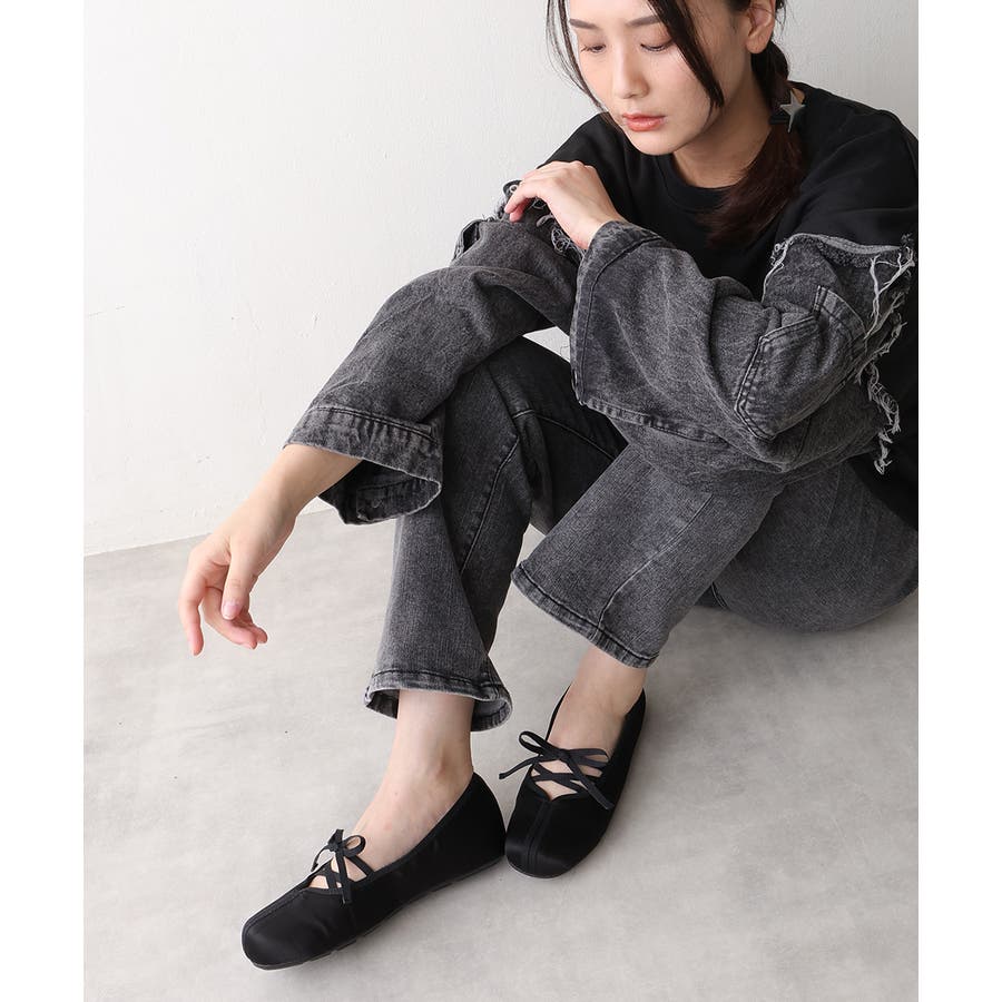 【25年秋冬新作】レースアップリボン フラット バレエパンプス
