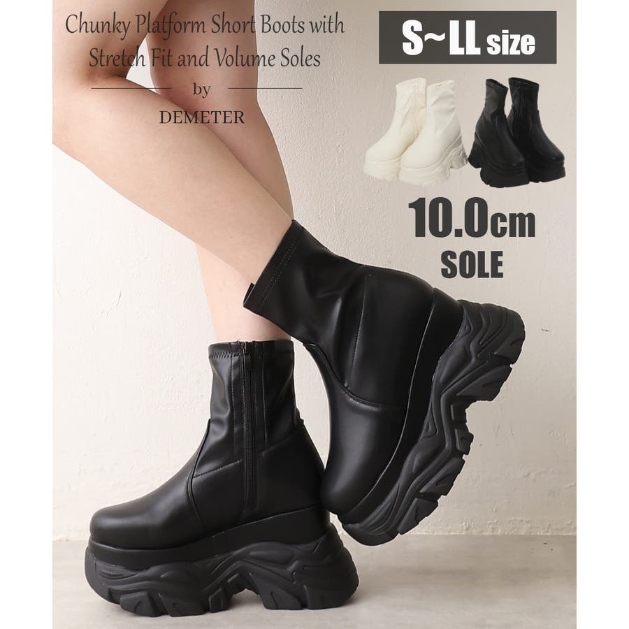 レディース/DMTR/DEMETER/デメテル/シューズ/靴/パンプス/スニーカー/ダッドスニーカー/ボリュームスニーカー/サンダル/ローファー/マニッシュ/ブーツ/ショートブーツ/ロングブーツ/ヒール/チャンキーヒール/太ヒール/厚底/厚底ソール/ボリュームソール/プラットフォーム/バルキー/美脚/脚長/人気/プチプラ/韓国/韓国ファッション/おすすめ/カジュアル/キレイめ/おしゃれ/オシャレ/お洒落/秋/冬/秋冬/秋物/冬物/春/夏/春夏/春物/夏物/新作/AW/SS/セクシー/大人/ストリート/シンプル/厚底ブーツ/厚底ショートブーツ/ストレッチ/ストレッチブーツ/ストレッチショートブーツ/ストレッチ素材/デザインソール/ダブルソール/ジップ/ジッパー/ファスナー/ショートブーツ/厚底ショートブーツ/ボリューム感/ボリューム/クール/モード/ストリート/スタイルアップ/デイリー/クッション/安定感/歩きやすい/履きやすい/S/M/L/LL/黒/BLACK/ブラック/アイボリー/IVORY/スムース