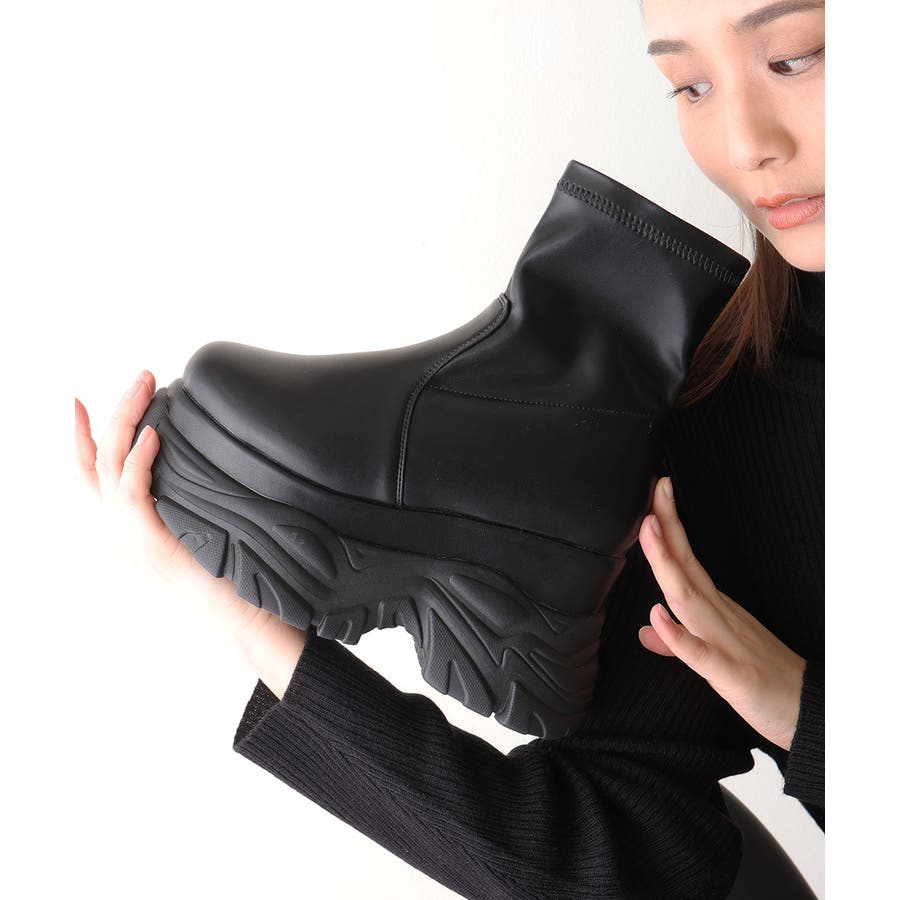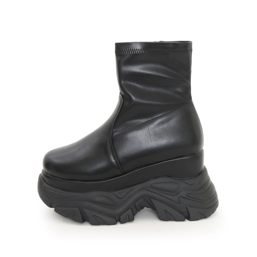【25年秋冬新作】厚底 ボリュームソール ストレッチ ショートブーツ