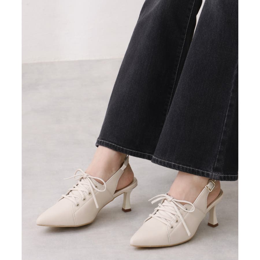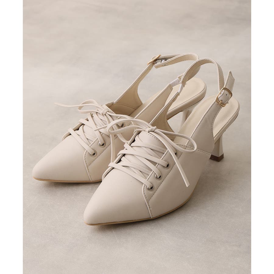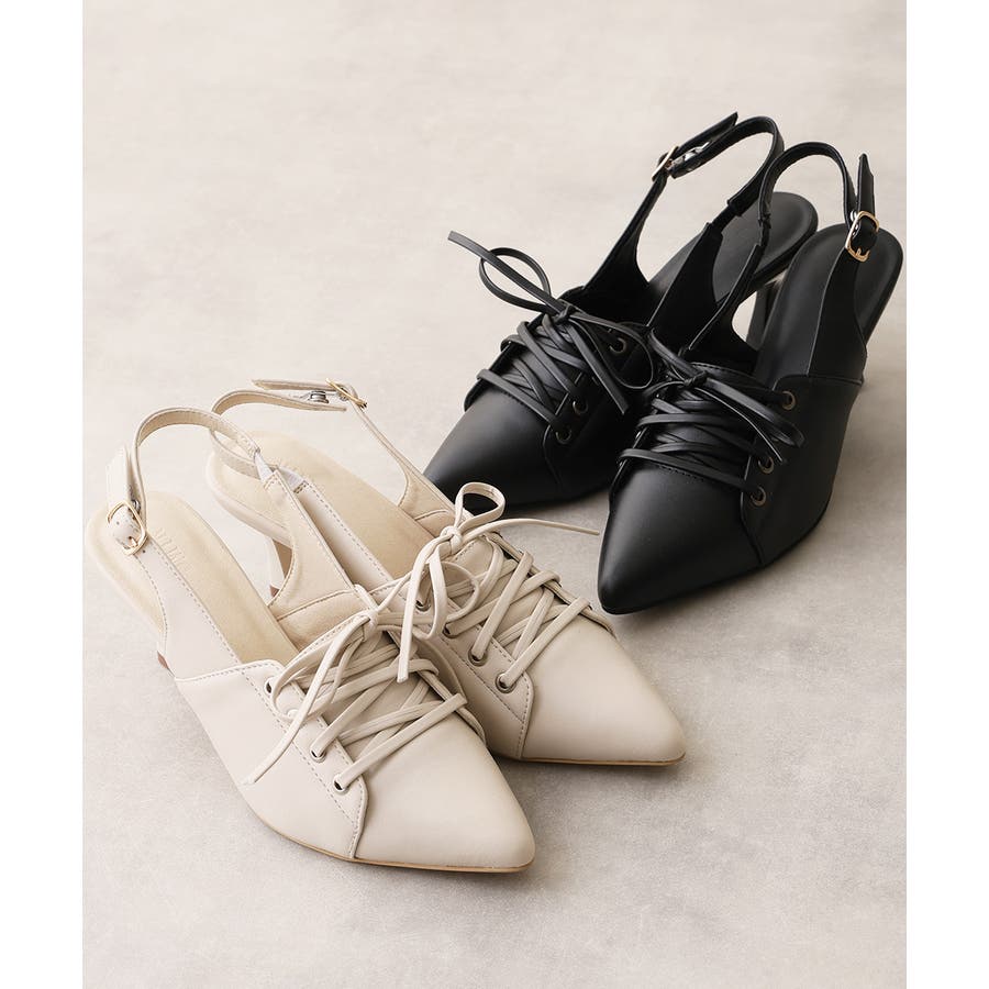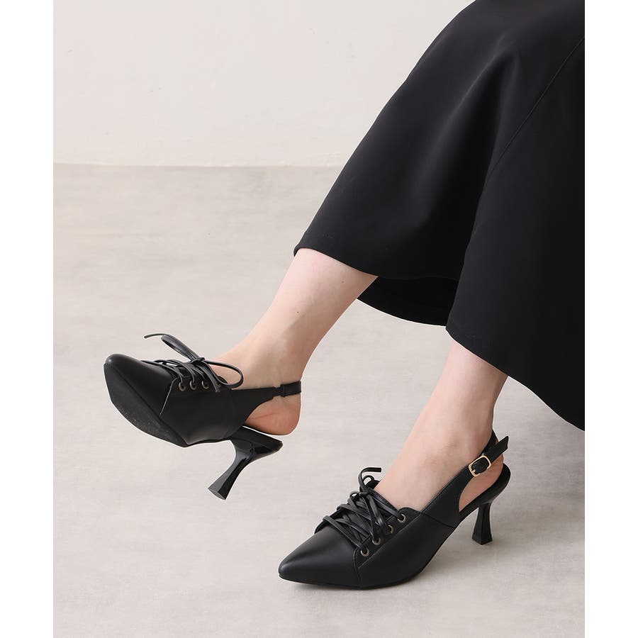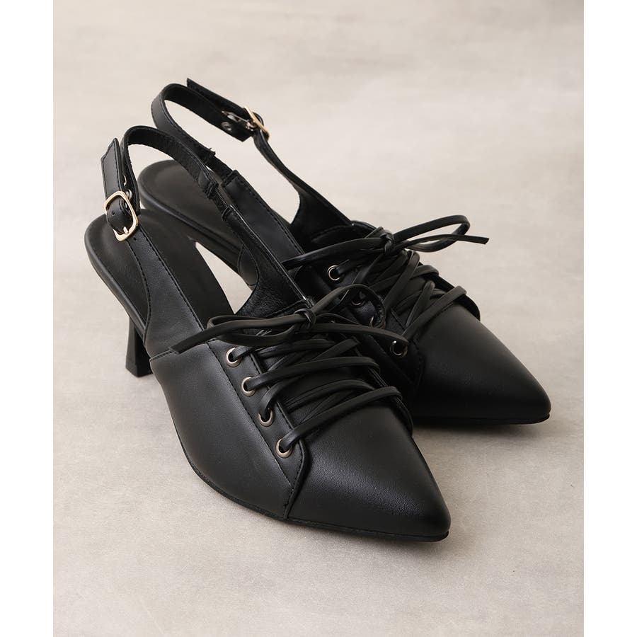 【26年春夏新作】ポインテッドトゥ レースアップ バックストラップ パンプス